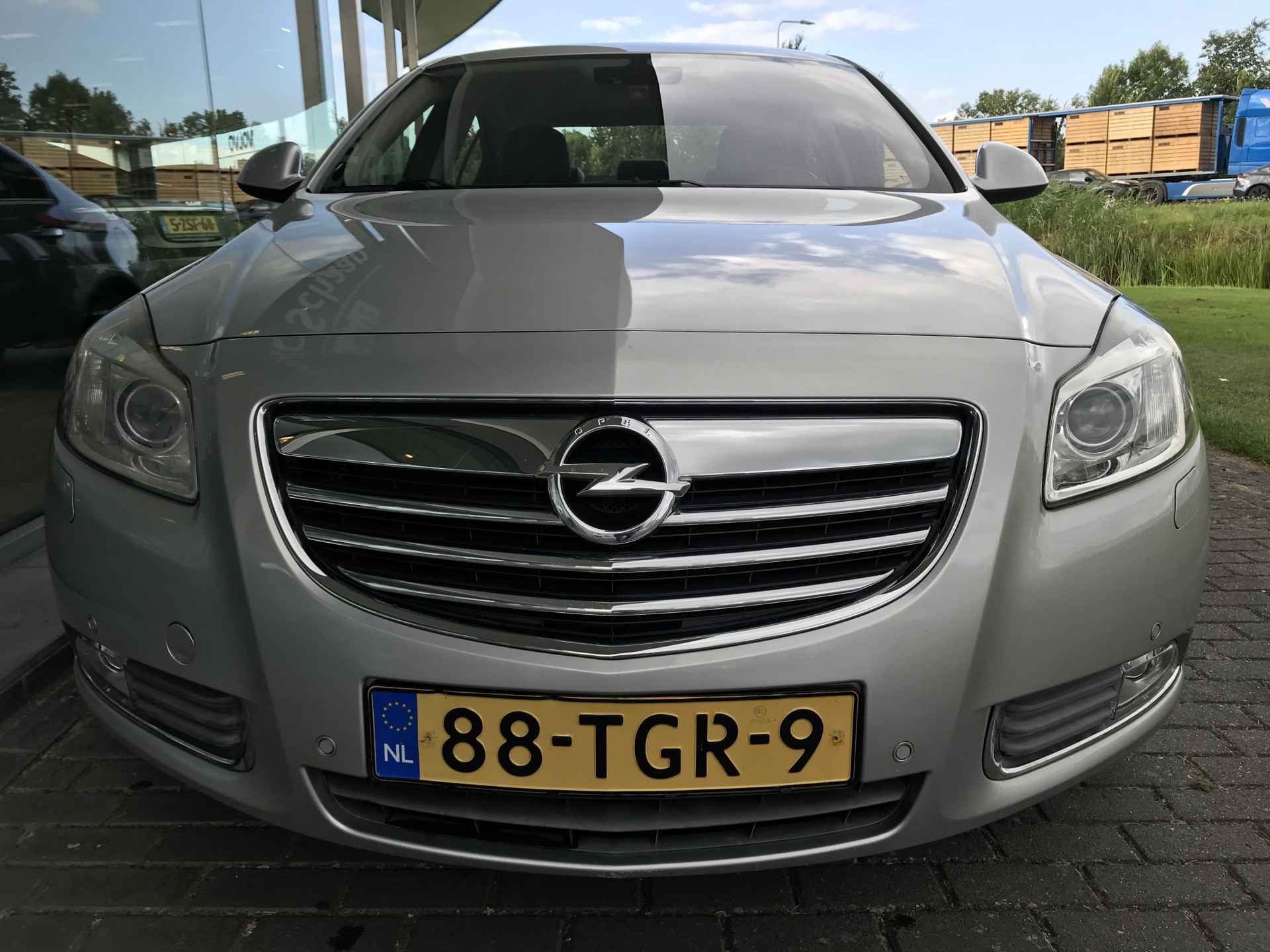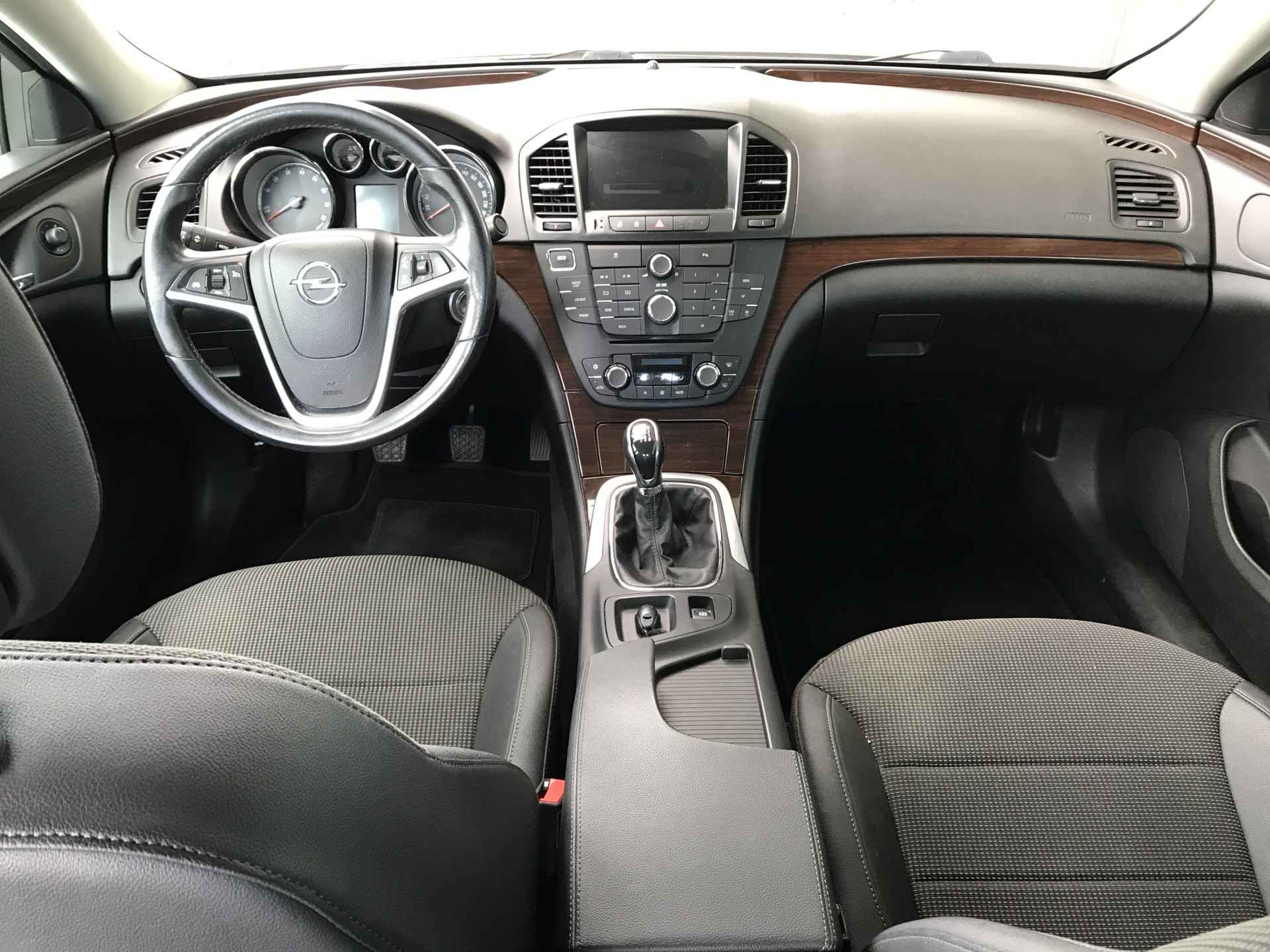 Opel Insignia 1.4 Turbo EcoFlex Cosmo voorzien van onder andere 18 inch lichtmetalen velgen, parkeersensoren voor en achter, mistlampen voor, xenon verlichting, automatisch dimmende binnenspiegel, chroom afwerking exterieur, elektrisch inklapbare buitenspiegels, lederen stuurwiel, cruise control, climate control en hout afwerking interieur. Prima onderhouden, boekjes ter inzage.