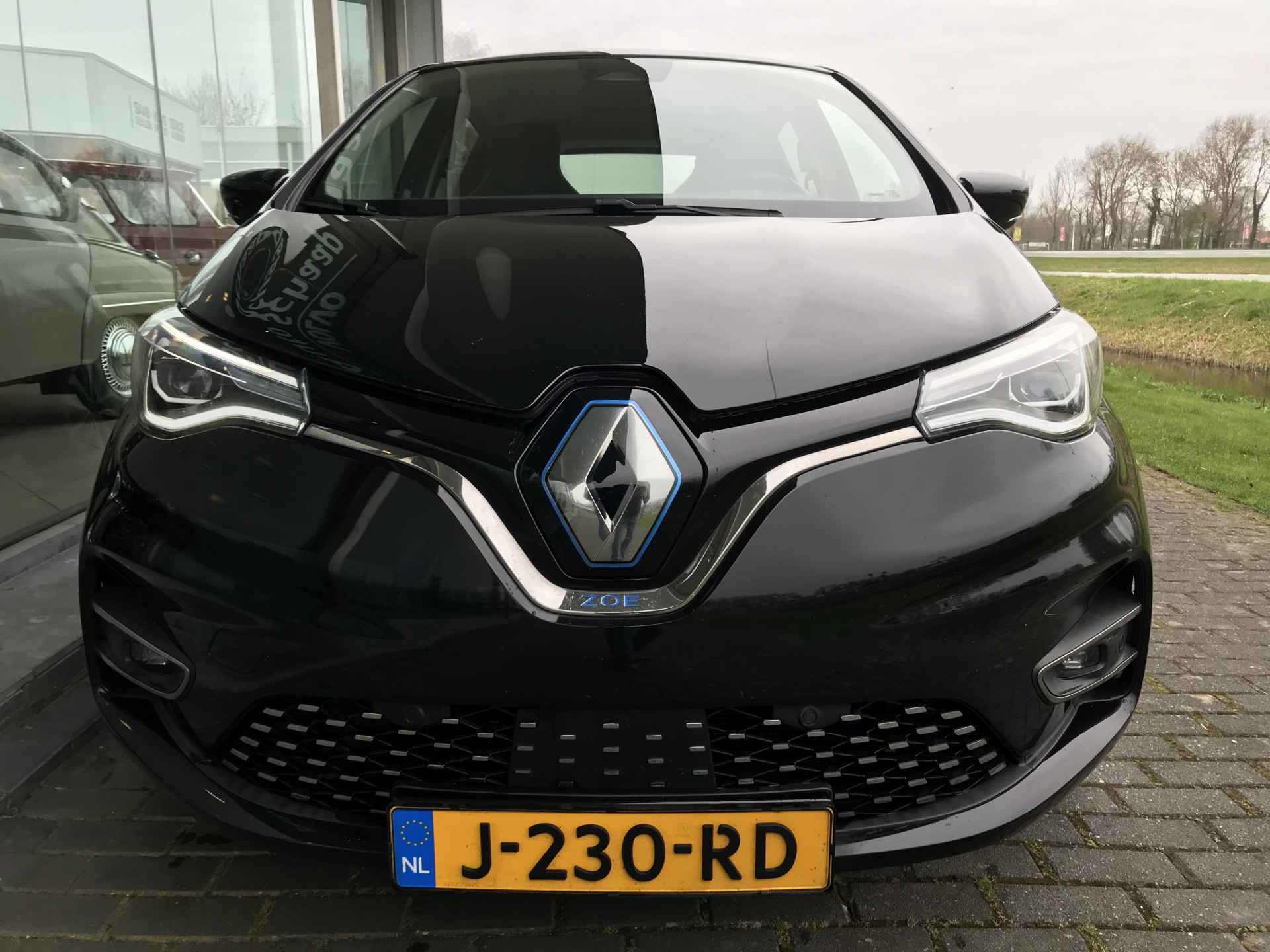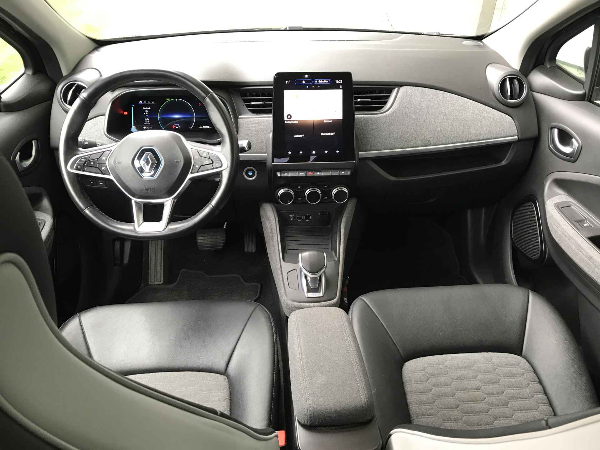 Renault ZOE R135 Intens 52 kWh voorzien van onder andere led dagrijverlichting, keyless entry, mistlampen voor, parkeersensoren voor en achter met camera, 16 inch lichtmetalen velgen met all-season banden, climate control, cruise control, automatisch dimmende binnenspiegel, elektrisch inklabare buitenspiegels, verwarmbare voorstoelen en stuurwiel en dodehoeksensoren. Volledig Renault dealer onderhouden en ingeruild van 1e eigenaar, boekjes ter inzage.