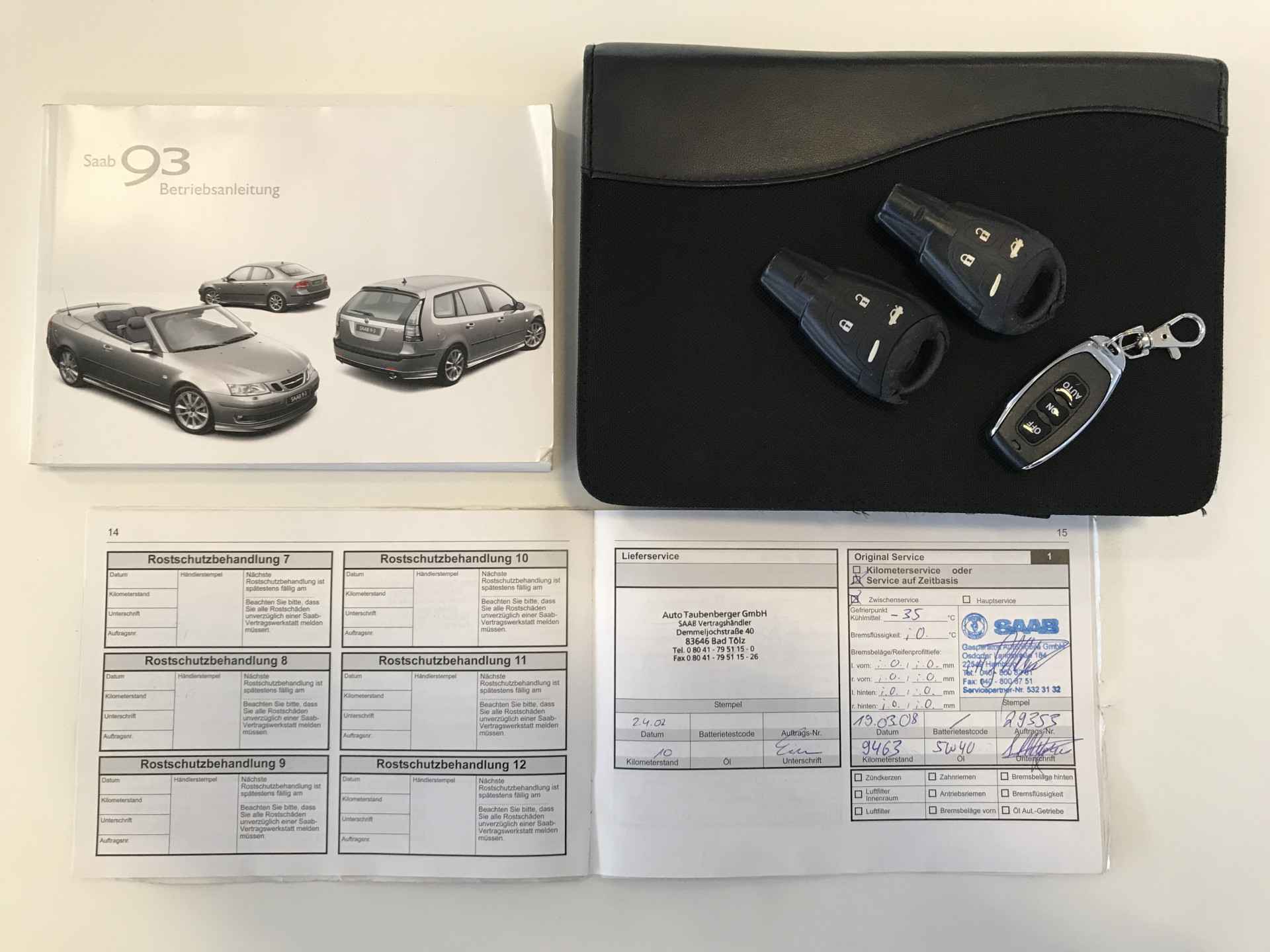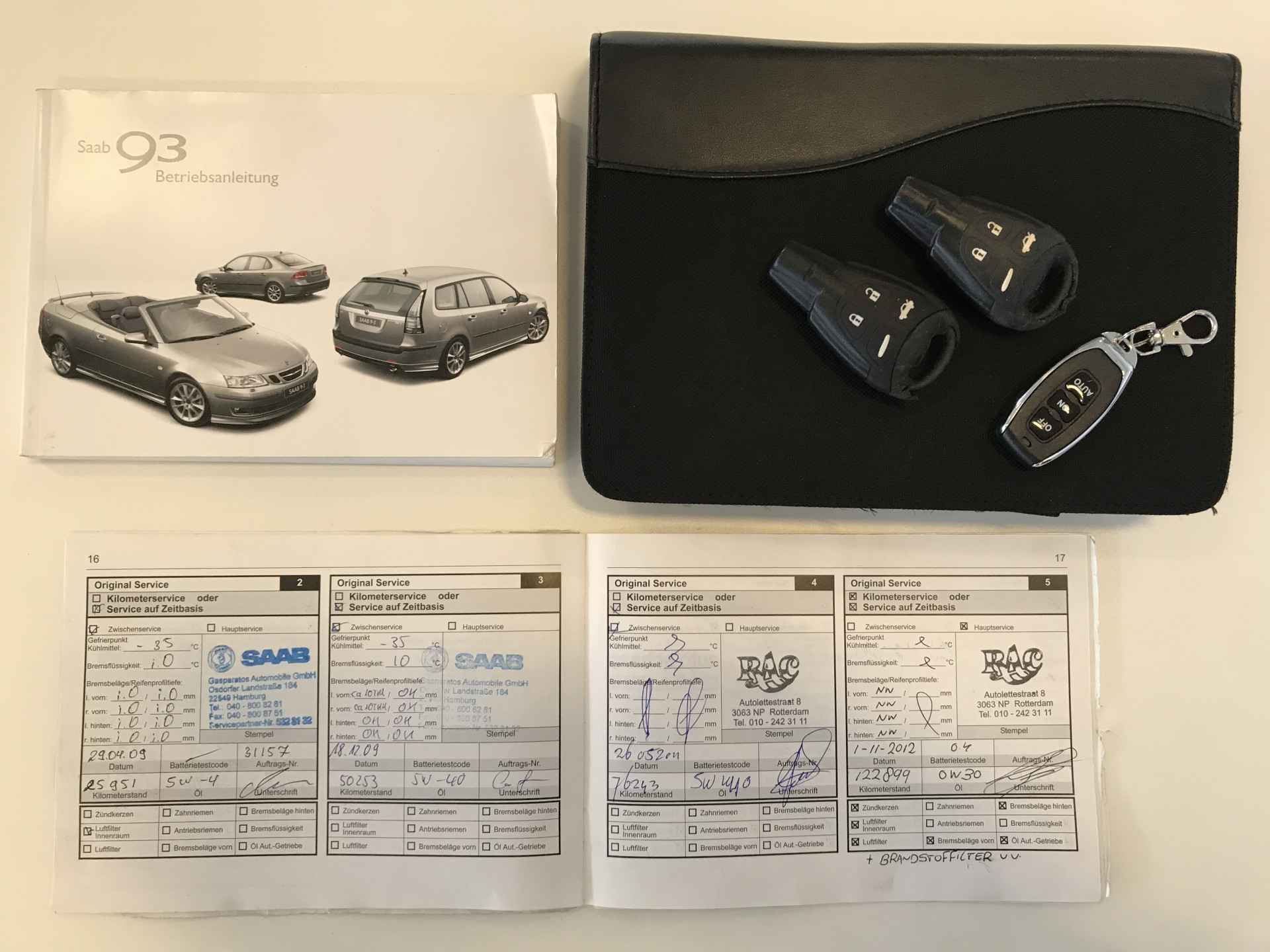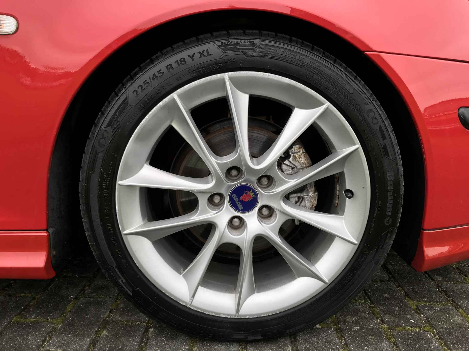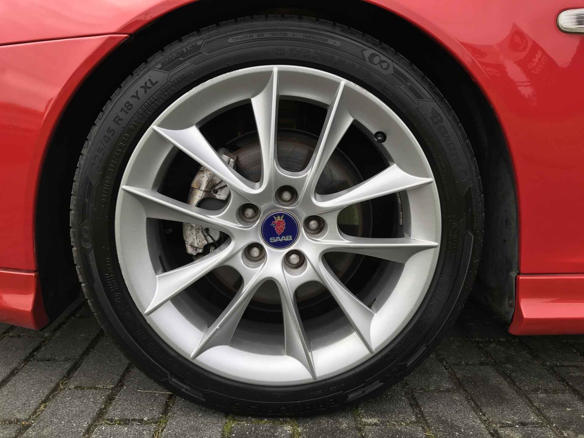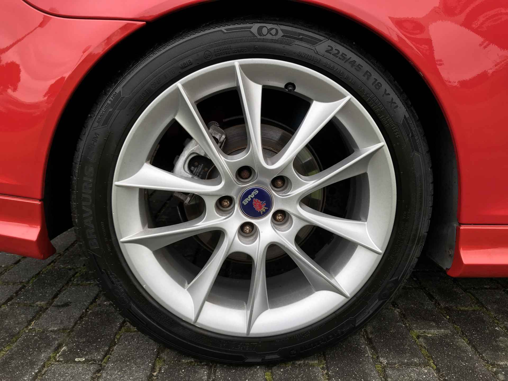 Saab 9-3 Cabriolet 1.8t Vector met Aero pakket automaat in de kleur Laser Red. Voorzien van onder andere skirtset en spoiler van de Aero, 18 inch lichtmetalen velgen, mistlampen voor, lederen bekleding, vaste trekhaak, cruise control, climate control, Parrot carkit, lederen stuurwiel, parkeersensoren achter, Hirsch performance software naar 195 pk, automatisch dimmende binnenspiegel en buitenspiegels, verwarmbare voorstoelen, alarm en aangepaste uitlaat. Volledig Saab dealer en specialist onderhouden, boekjes ter inzage. Onlangs groot onderhoud gehad.