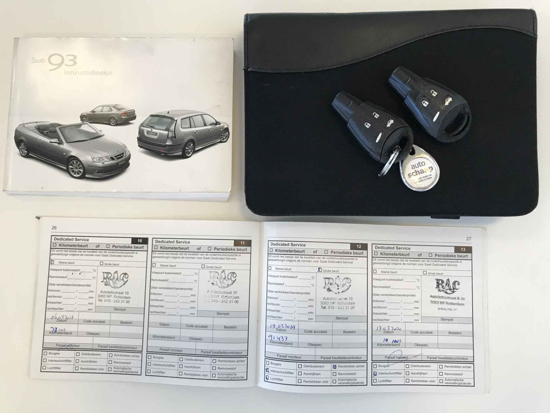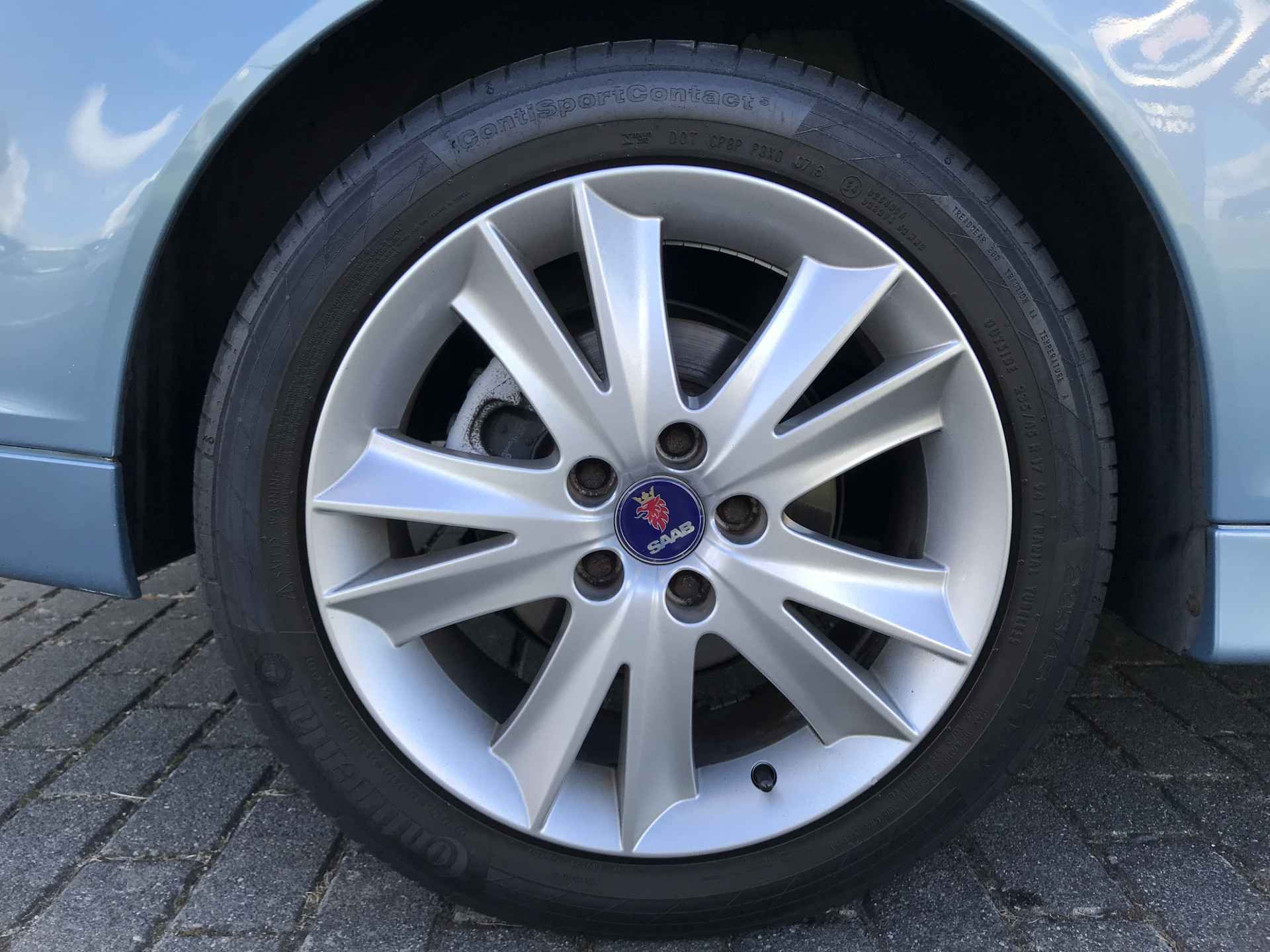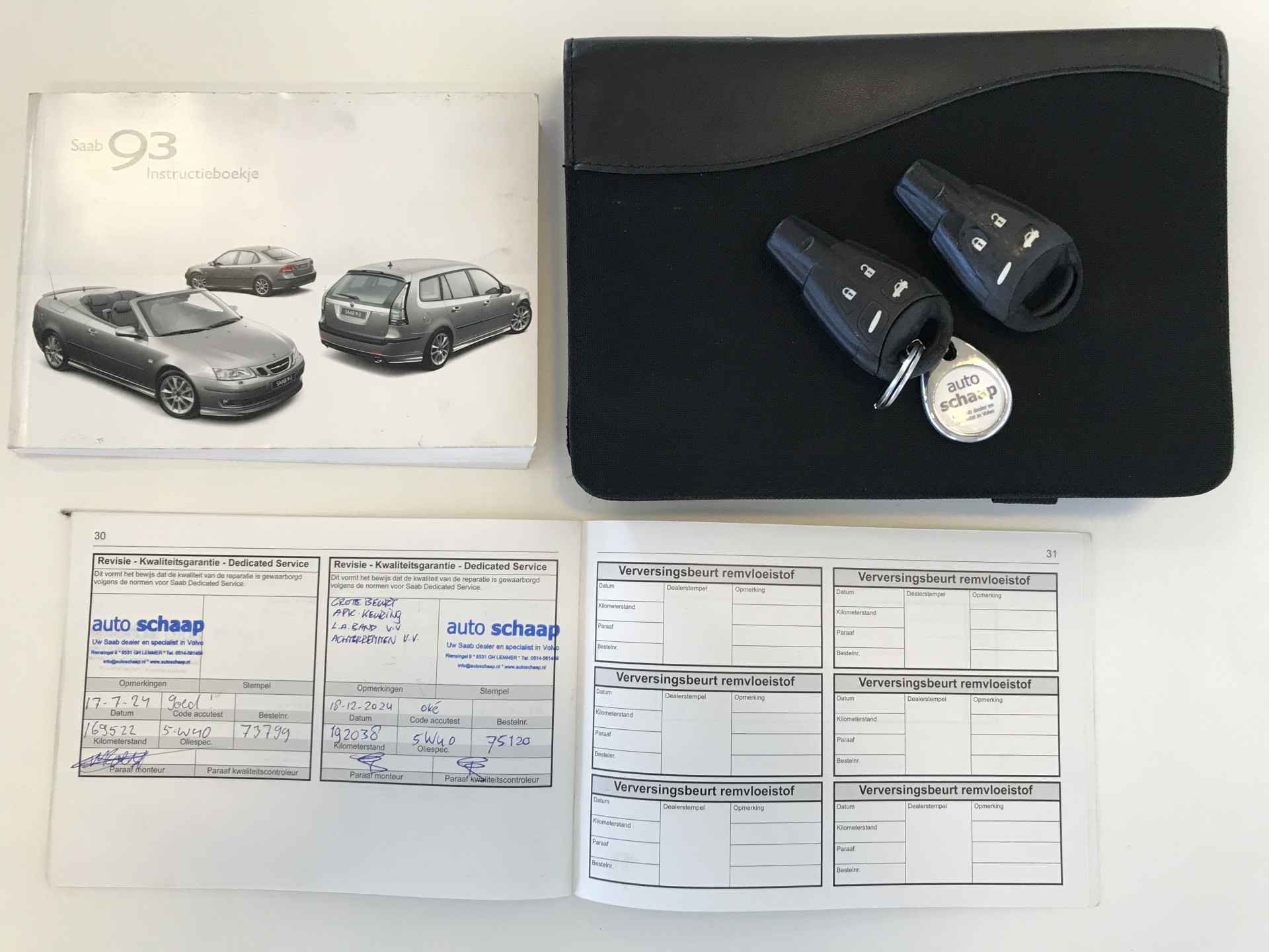 Saab 9-3 Cabriolet 1.8t Vector Anniversary uitvoering in de kleur Ice Blue metallic. Voorzien van onder andere 17 inch lichtmetalen velgen, bi-xenon koplampen, Hirsch Performance software naar 195 pk, fabrieksnavigatie met bluetooth telefoonfunctie, verwarmbare voorstoelen, climate control, cruise control, achterspoiler, park assist achter en regensensor. Volledig Saab dealer onderhouden, boekjes ter inzage. Groot onderhoud uitgevoerd bij 192.000 km. In 2022 voorzien van nieuwe sofftop. Youngtimer regeling van toepassing!