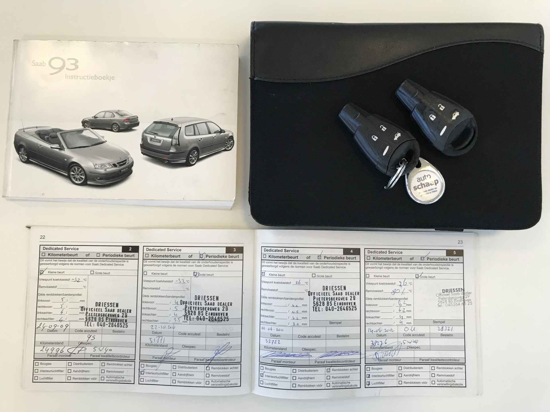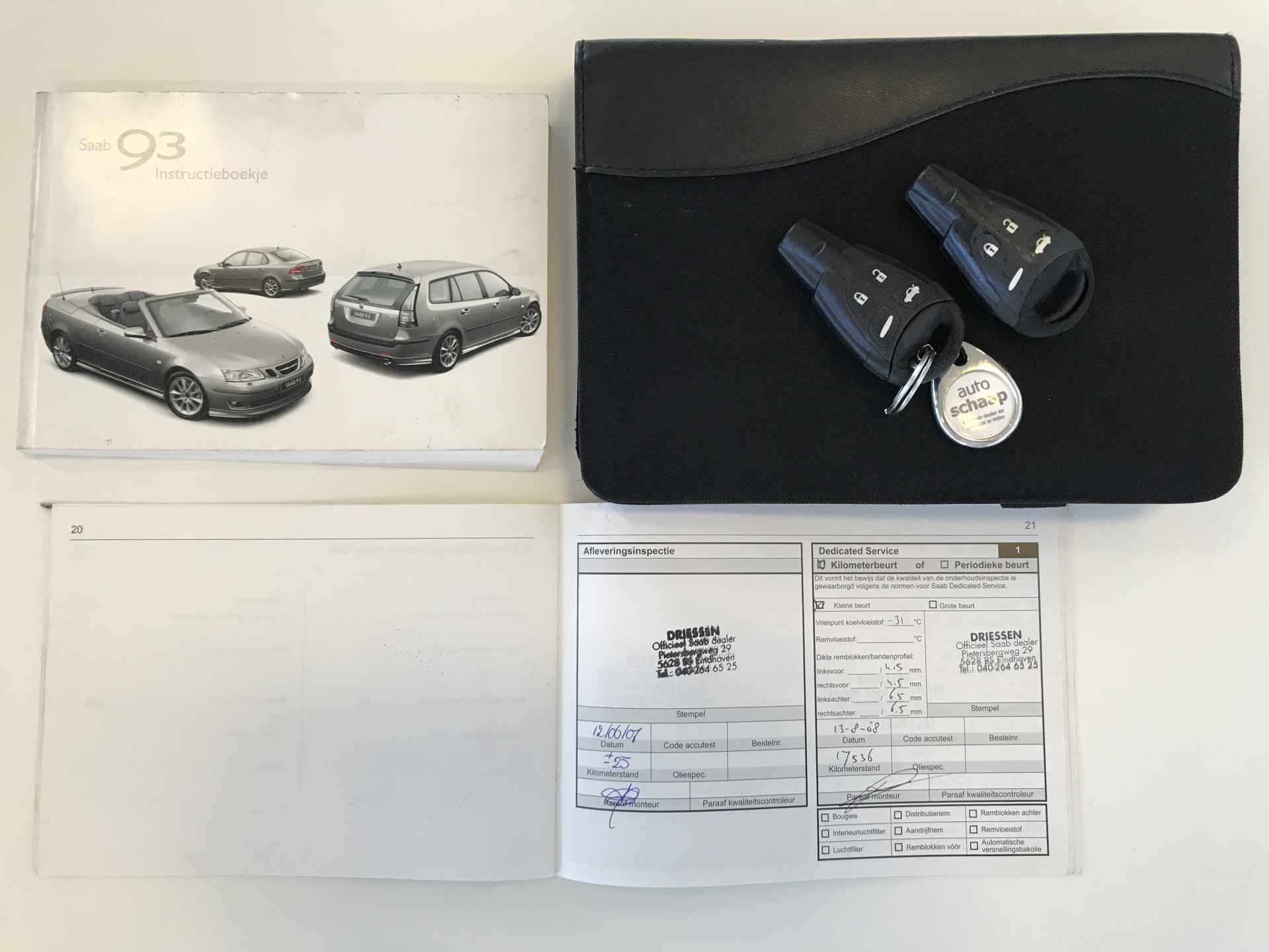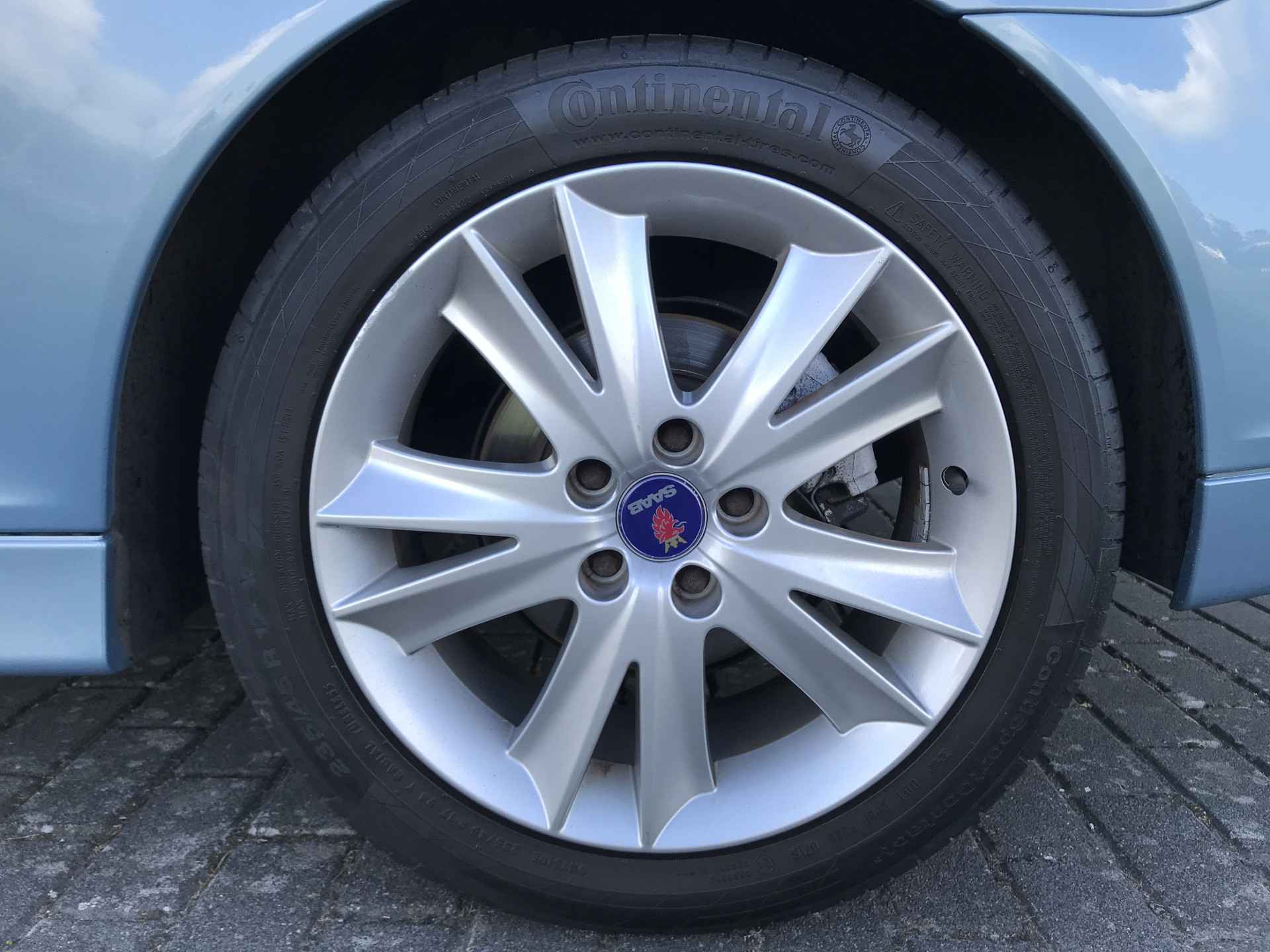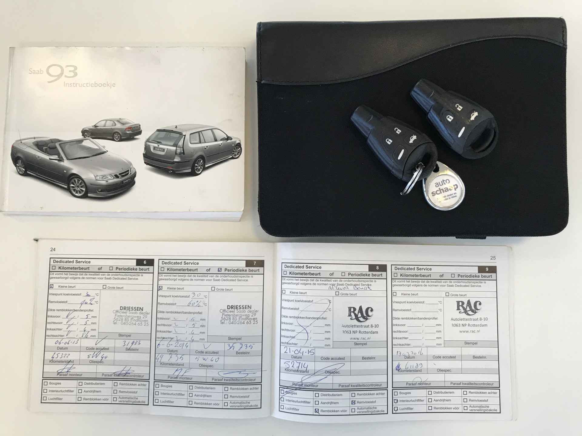 Saab 9-3 Cabriolet 1.8t Vector Anniversary uitvoering in de kleur Ice Blue metallic. Voorzien van onder andere 17 inch lichtmetalen velgen, bi-xenon koplampen, Hirsch Performance software naar 195 pk, fabrieksnavigatie met bluetooth telefoonfunctie, verwarmbare voorstoelen, climate control, cruise control, achterspoiler, park assist achter en regensensor. Volledig Saab dealer onderhouden, boekjes ter inzage. Groot onderhoud uitgevoerd bij 192.000 km. In 2022 voorzien van nieuwe sofftop. Youngtimer regeling van toepassing!