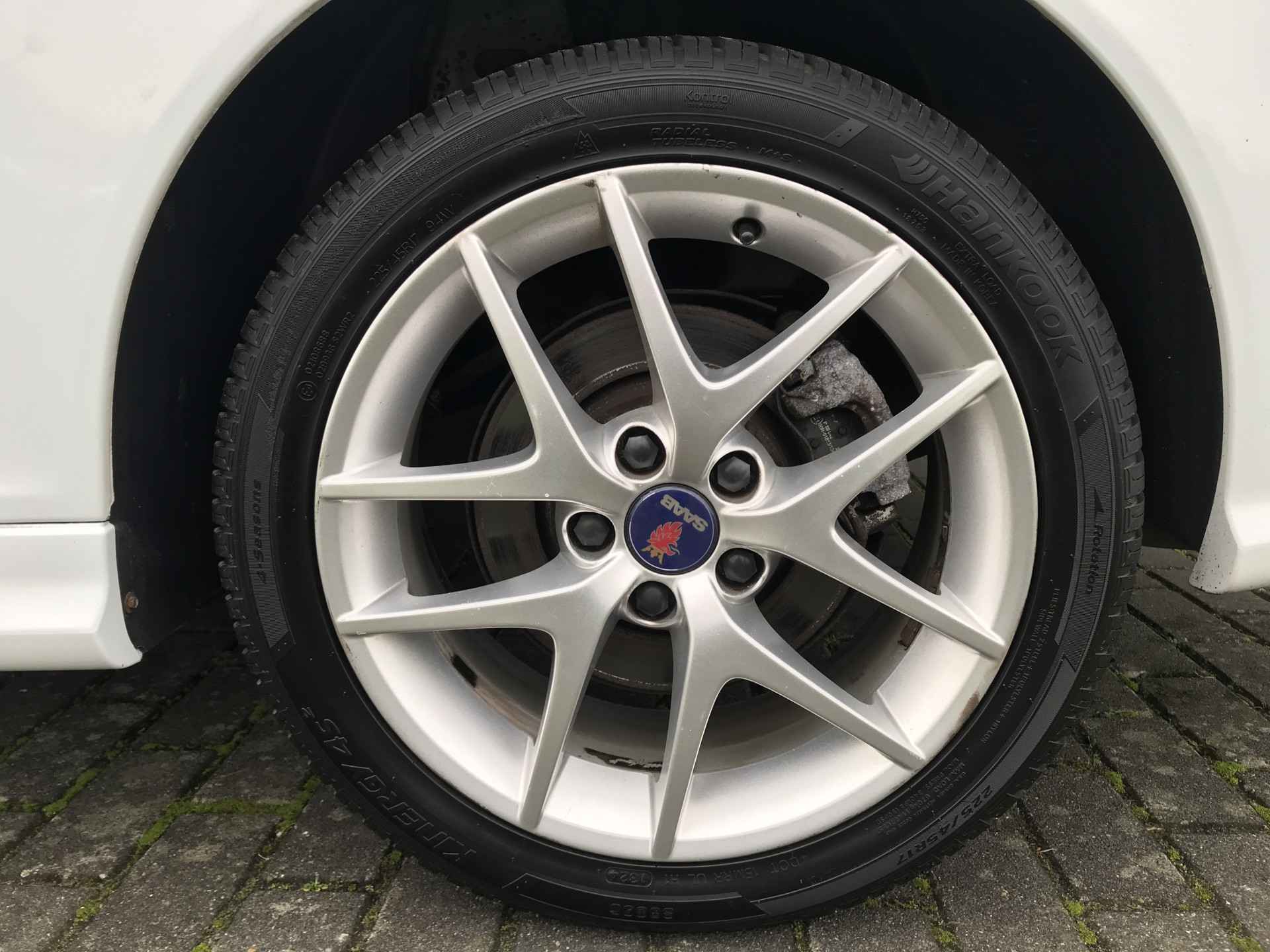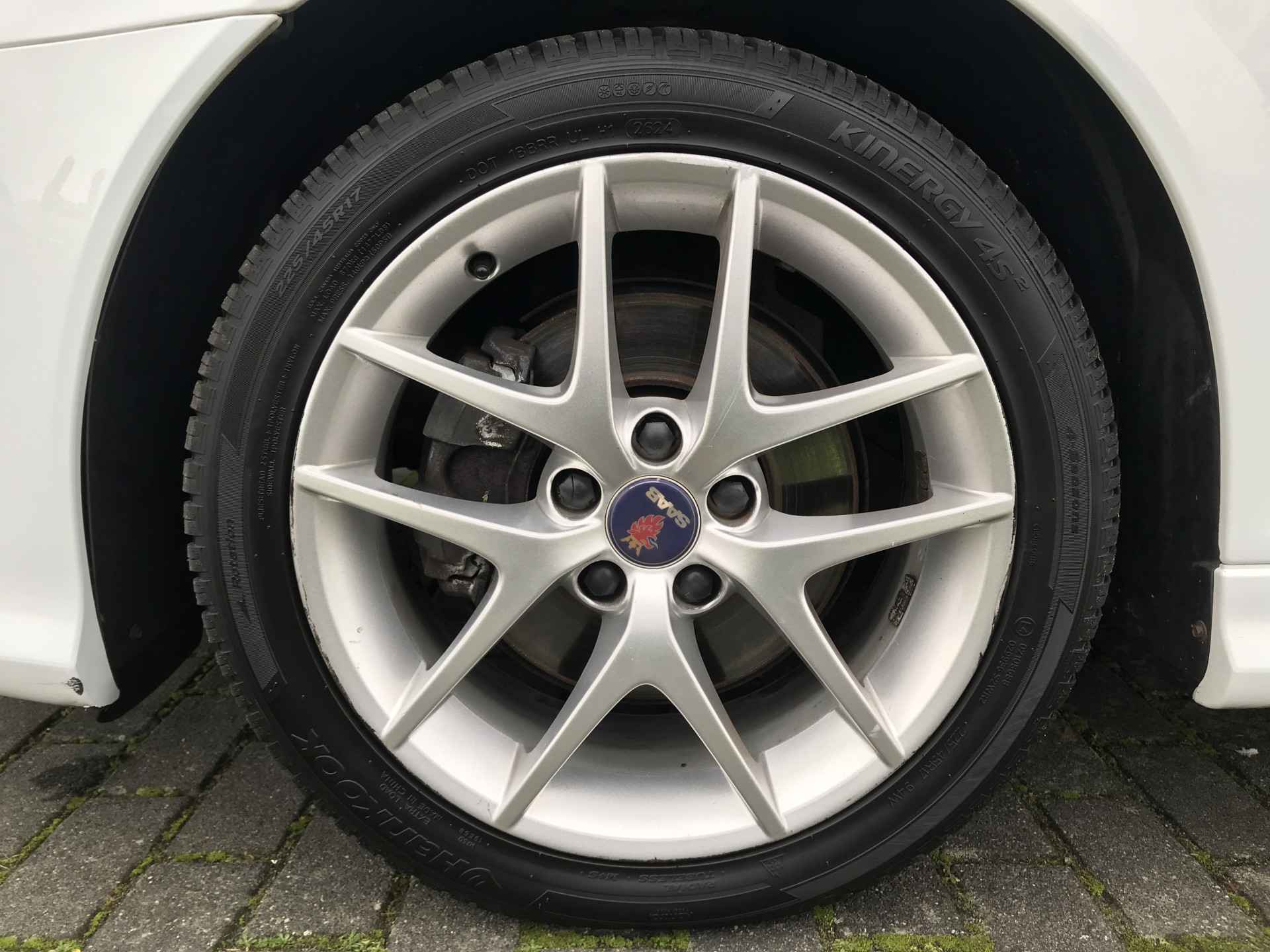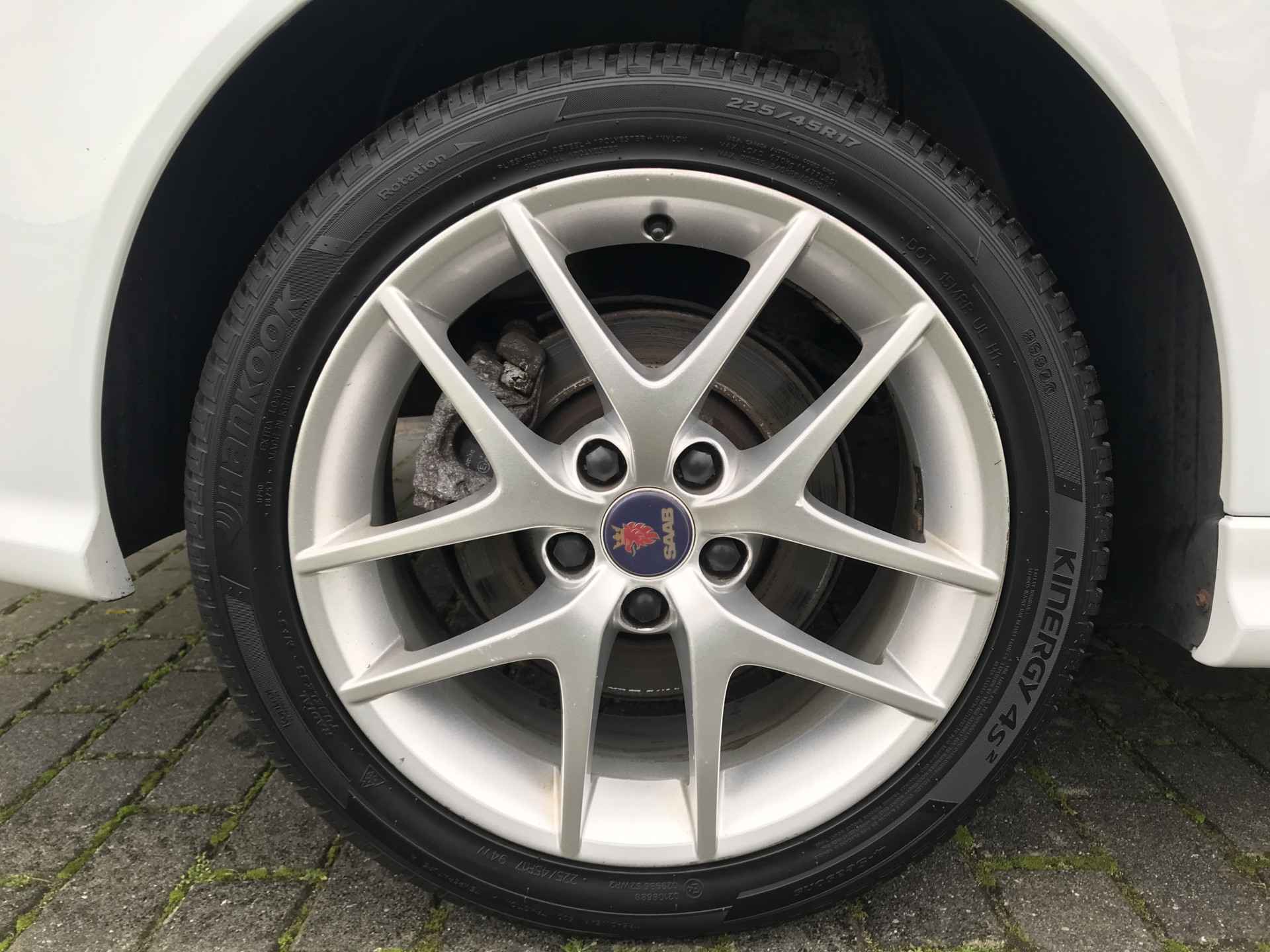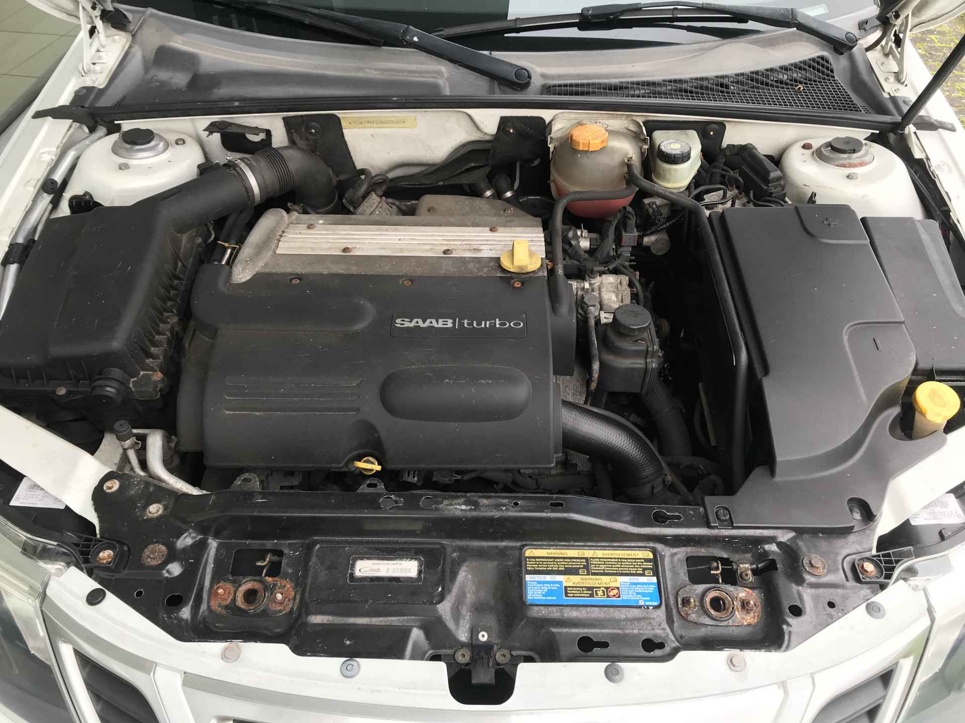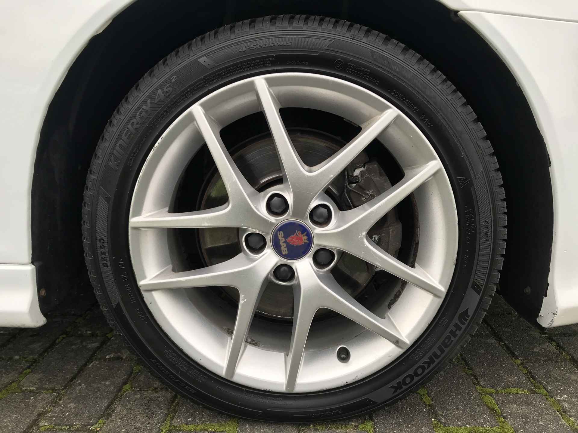 Saab 9-3 Cabriolet 1.8t Vector in de kleur Arctic White. Voorzien van onder andere afneembare trekhaak, parkeersensoren achter, verwarmbare voorstoelen, volledig lederen bekleding, Isofix bevestiging voor kinderzitjes op achterbank, Hirsch Performance software naar 195 pk, 17 inch lichtmetalen velgen, cruise control, climate control, koplampsproeiers en mistlampen voor. Prima onderhouden, facturen aanwezig. Koppeling vervangen bij 194.000 km.