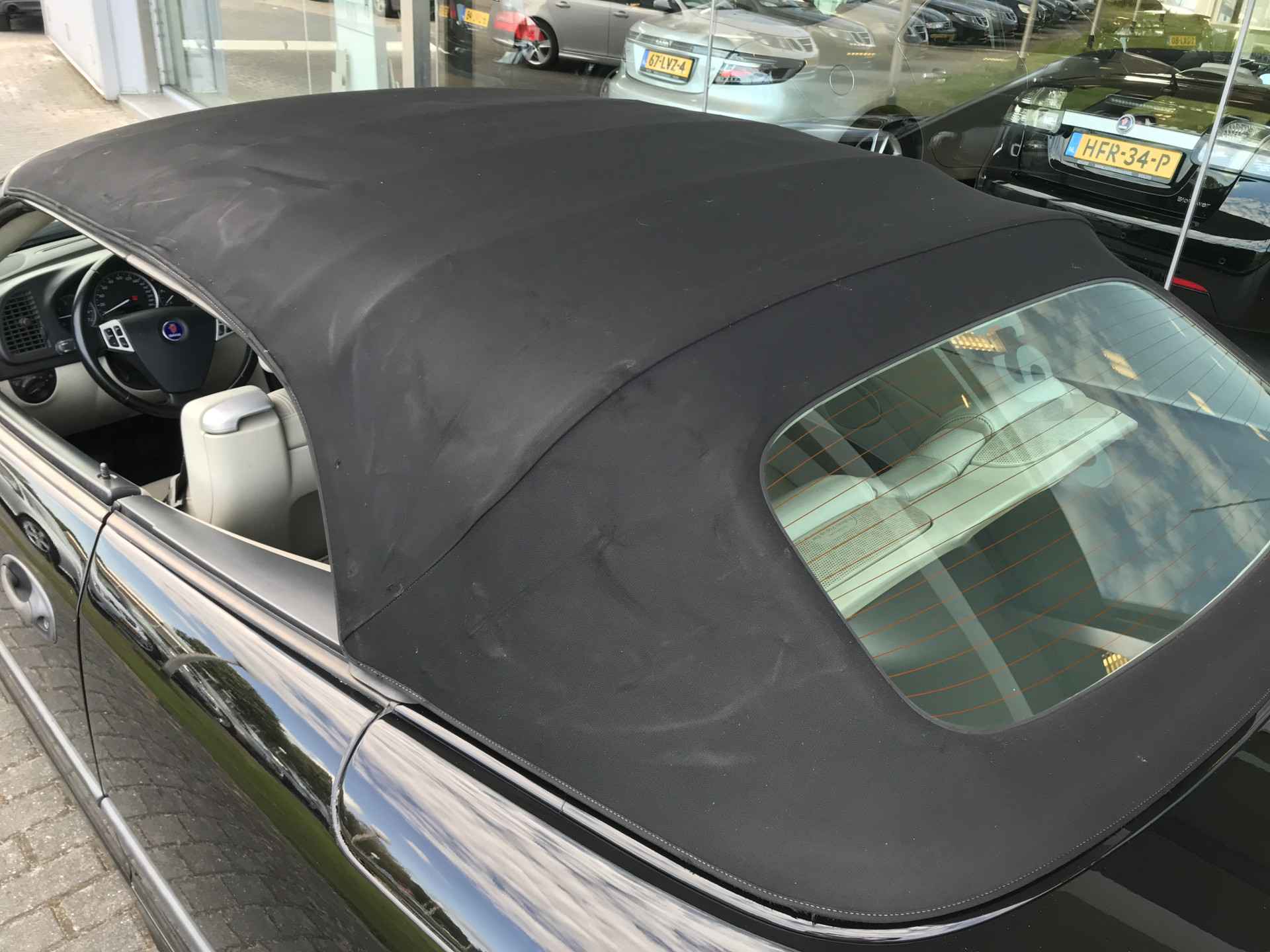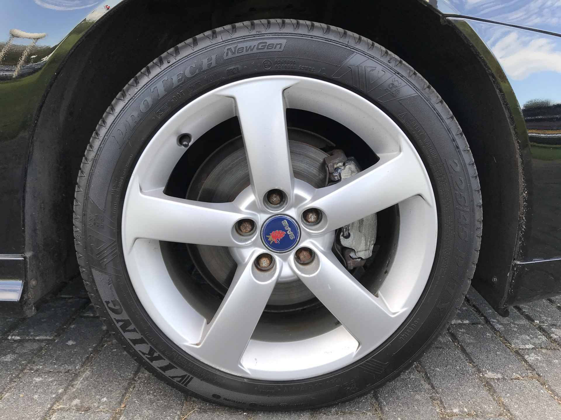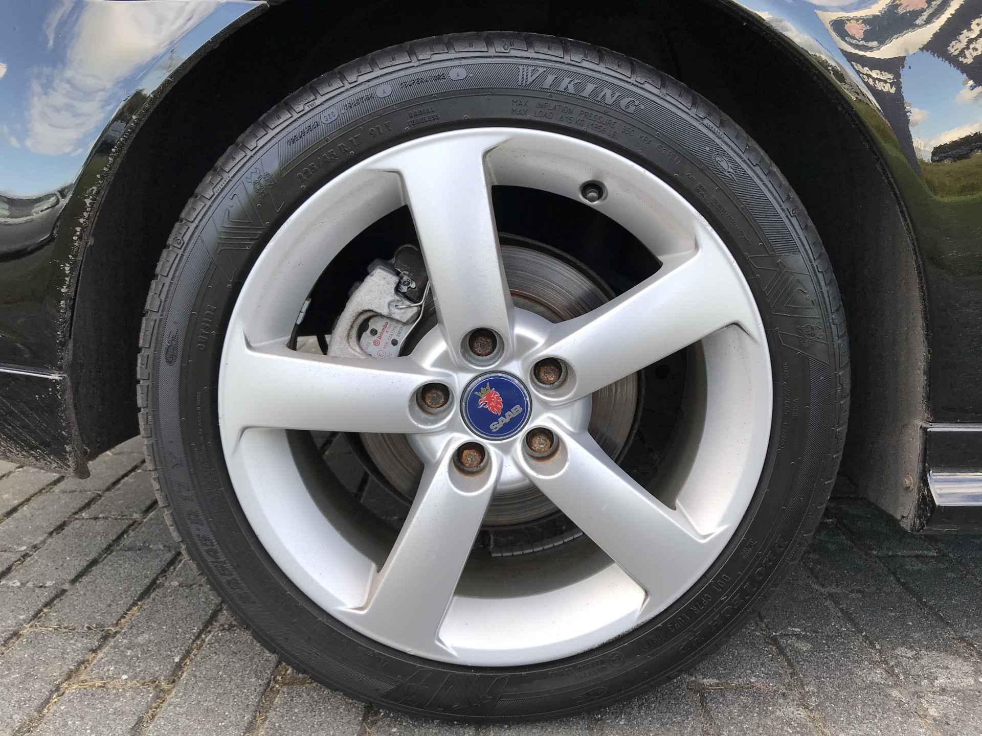 Saab 9-3 Cabriolet 2.0t Vector voorzien van onder andere 17 inch lichtmetalen velgen, parkeersensoren achter, lederen bekleding, turbodrukmeter, climate control, cruise control, verwarmbare voorstoelen, fabrieksnavigatiesysteem, ESP, automatisch dimmende binnenspiegel, regensensor, alarm, mistlampen voor en bekerhouder. Prima onderhouden, boekjes ter inzage. Door ons voorzien van nieuwe aircoverdamper.
