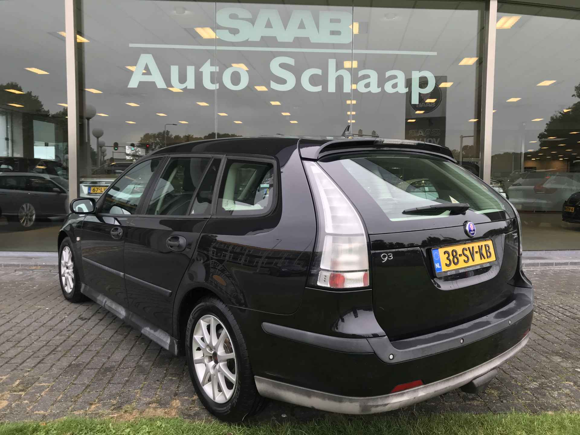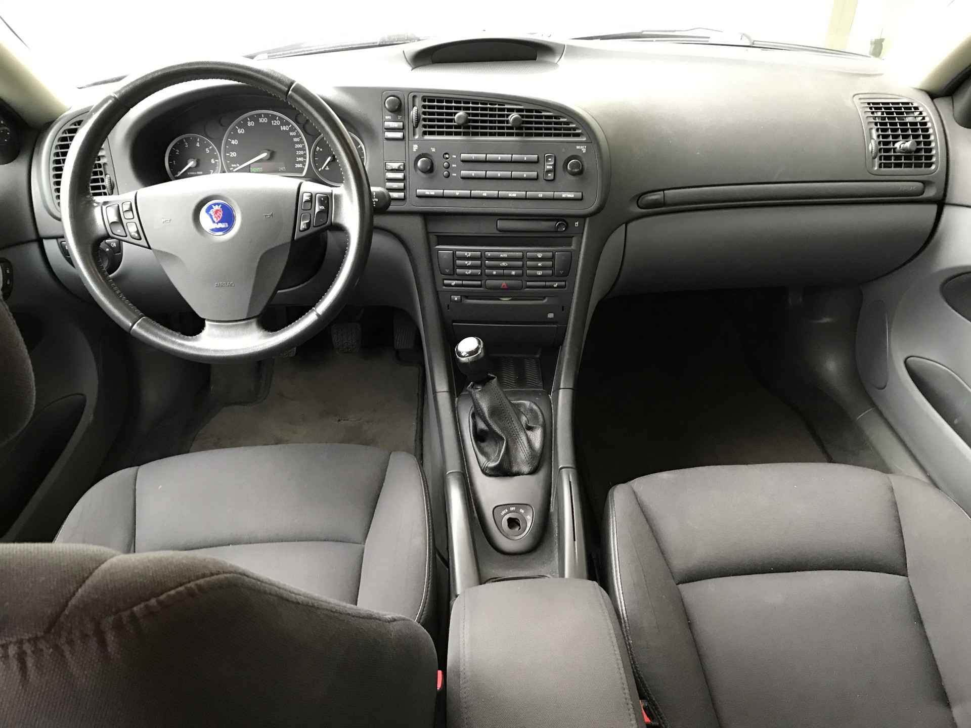 Saab 9-3 Sport Estate 1.8t Linear voorzien van onder andere 16 inch lichtmetalen velgen, Hirsch Performance software naar 195 pk, parkeersensoren achter, mistlampen voor, cruise control, climate control, verwarmbare voorstoelen, regensensor, traction control, audio 7 speakers met cd-speler, lederen stuurwiel, afneembare trekhaak en middenarmsteun voor. Vanaf 2014 met 150.000 kilometer bij ons in onderhoud, volledig Saab dealer onderhouden. Onlangs voorzien van nieuwe radiateur en airco verdamper. Youngtimer regeling van toepassing.