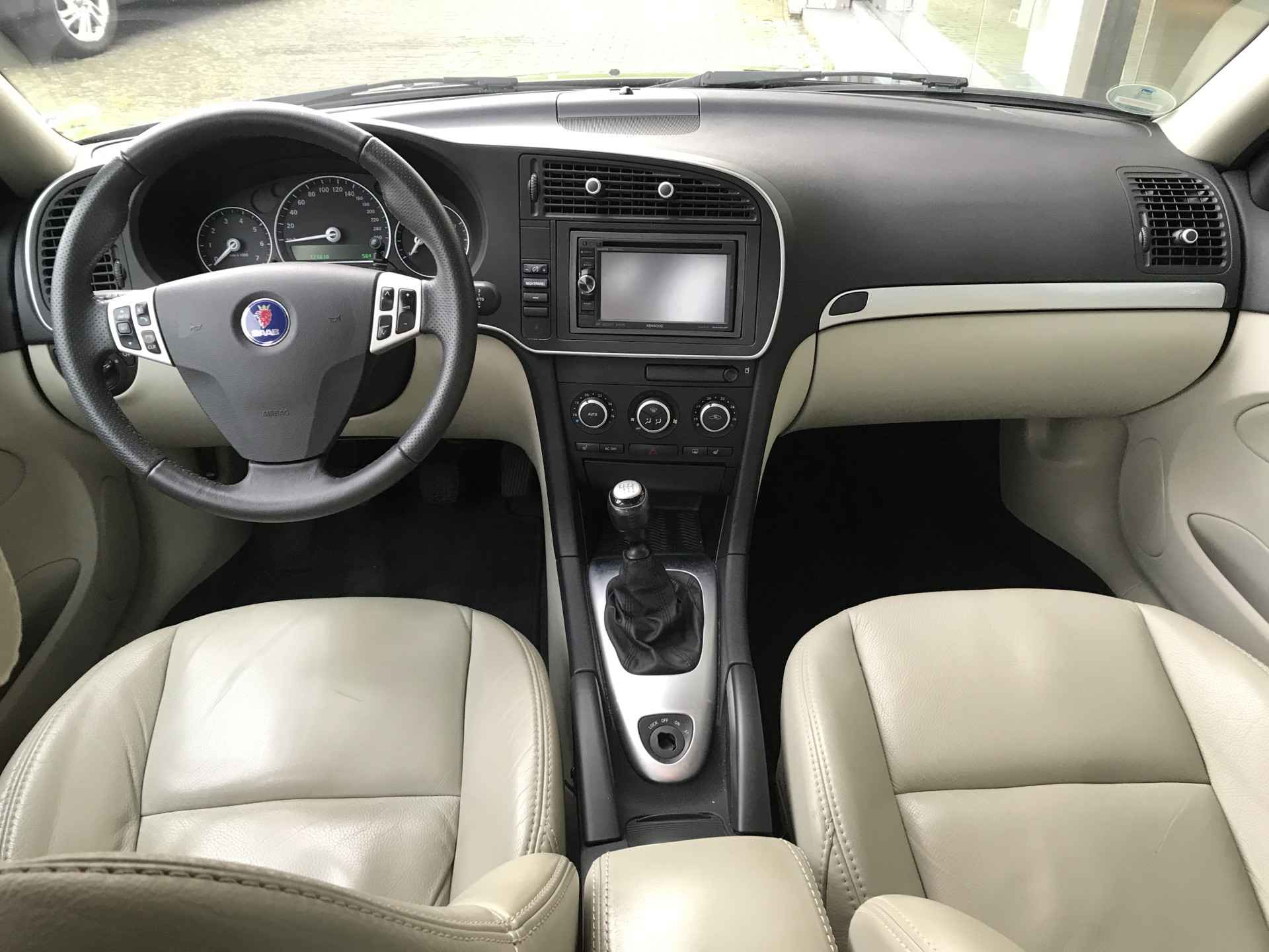 Luxe Saab 9-3 Sport Sedan 1.8t Vector voorzien van onder andere 18 inch lichtmetalen velgen (ALU65), Hirsch Performance software naar 195 pk, xenon verlichting, regensensor, vaste trekhaak, parkeersensoren achter, lederen stuurwiel, verwarmbare voorstoelen, navigatiesysteem, elektrisch bedienbare voorstoelen, automatisch dimmende binnenspiegel en Premium lederen bekleding. Prima onderhouden, boekjes ter inzage.