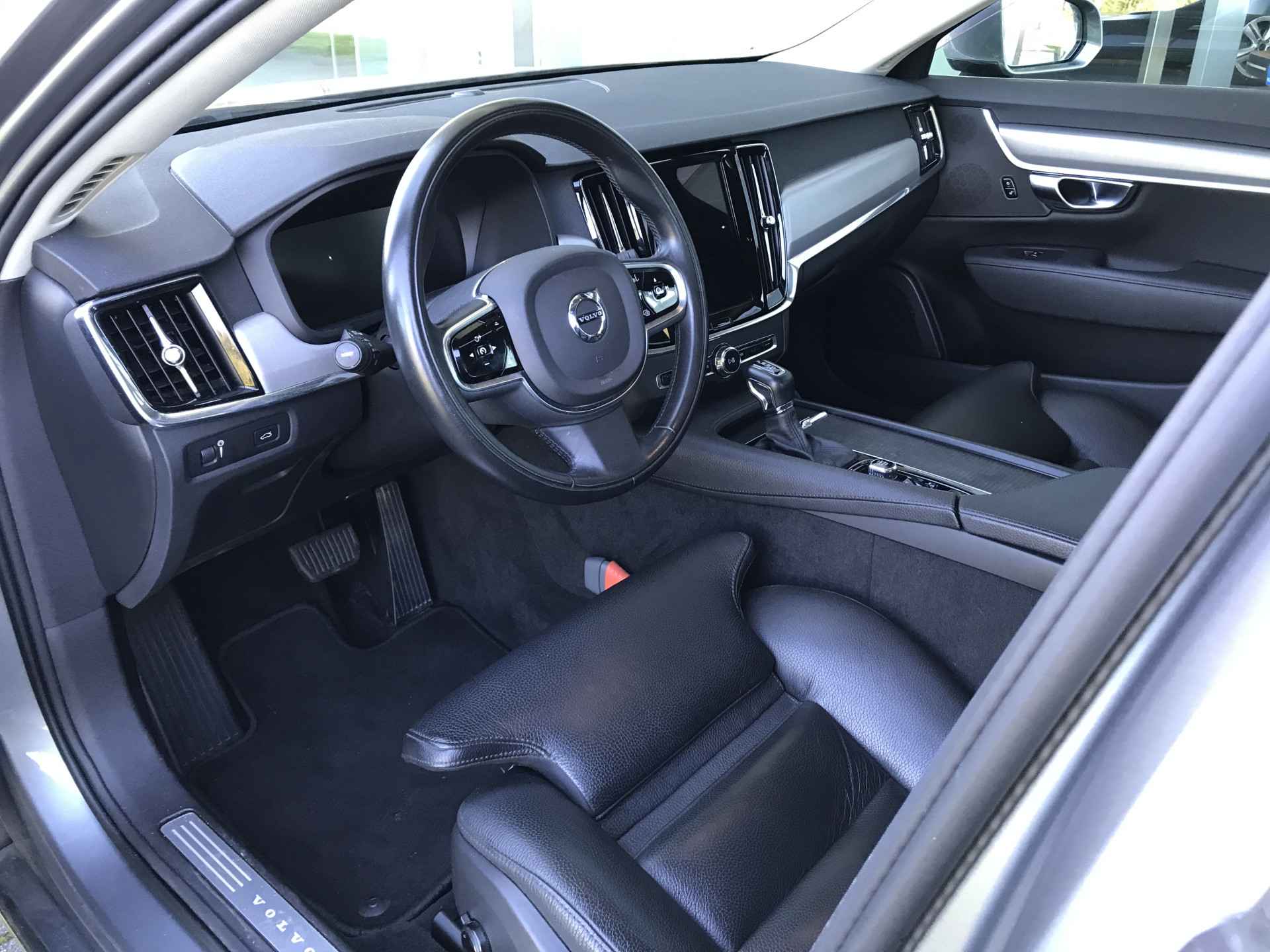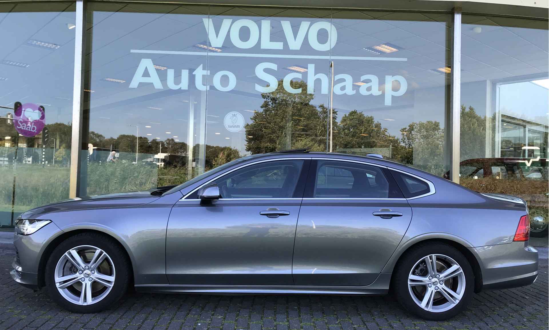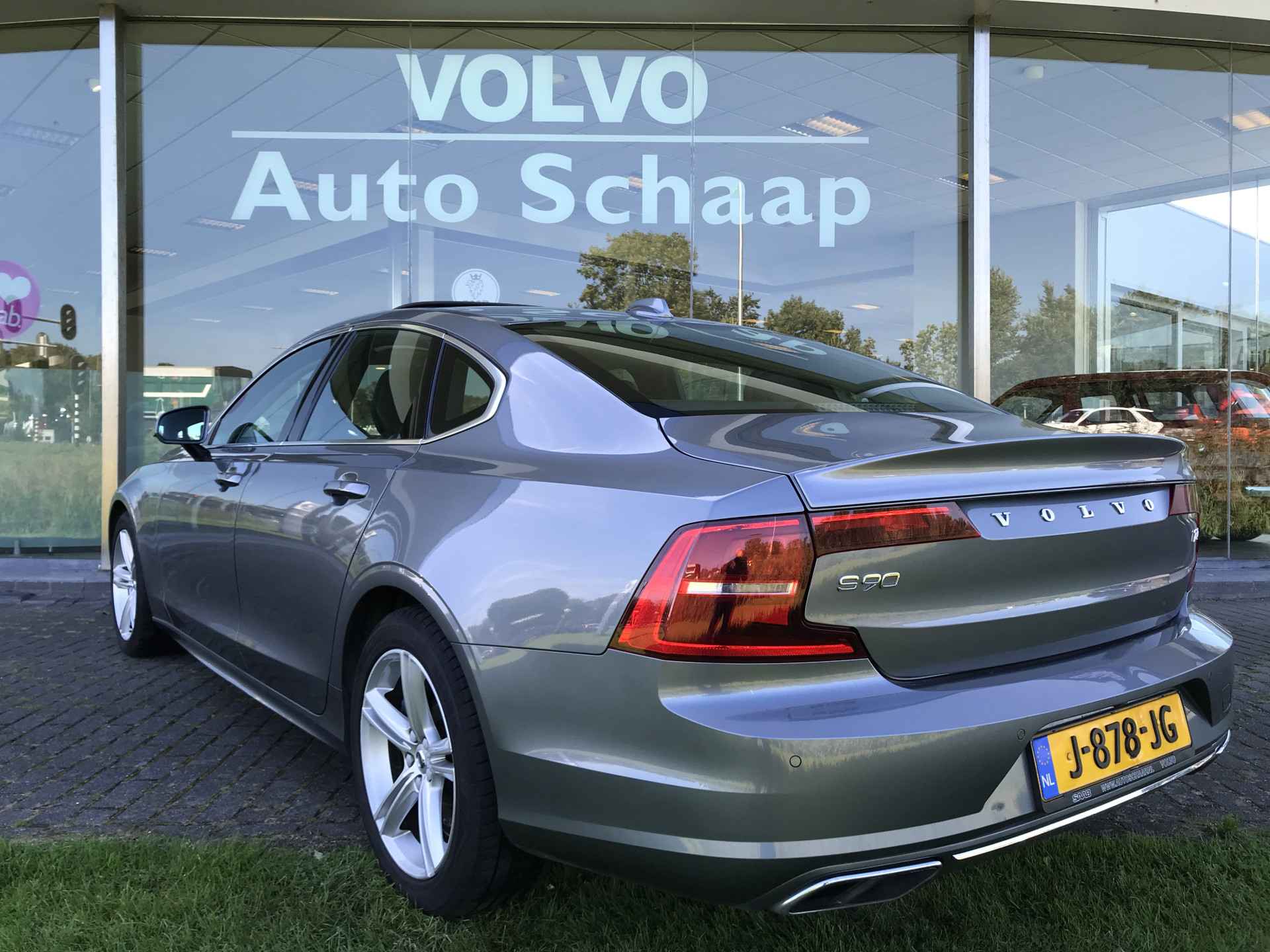 Volvo S90 2.0 T4 Momentum Pro voorzien van onder andere 18 inch lichtmetalen velgen, LED verlichting, parkeersensoren voor en achter met camera, dodehoeksensoren, keyless entry, On-Call functie, achterspoiler, elektrisch bedienbare kofferklep, verwarmbare voorstoelen en achterbank, zonnescherm elektrisch bedienbaar, adaptieve cruise control met pilot assist, standkachel, schuif-/kanteldak en Apple Carplay/Android auto. Volledig Volvo dealer onderhouden, boekjes ter inzage.