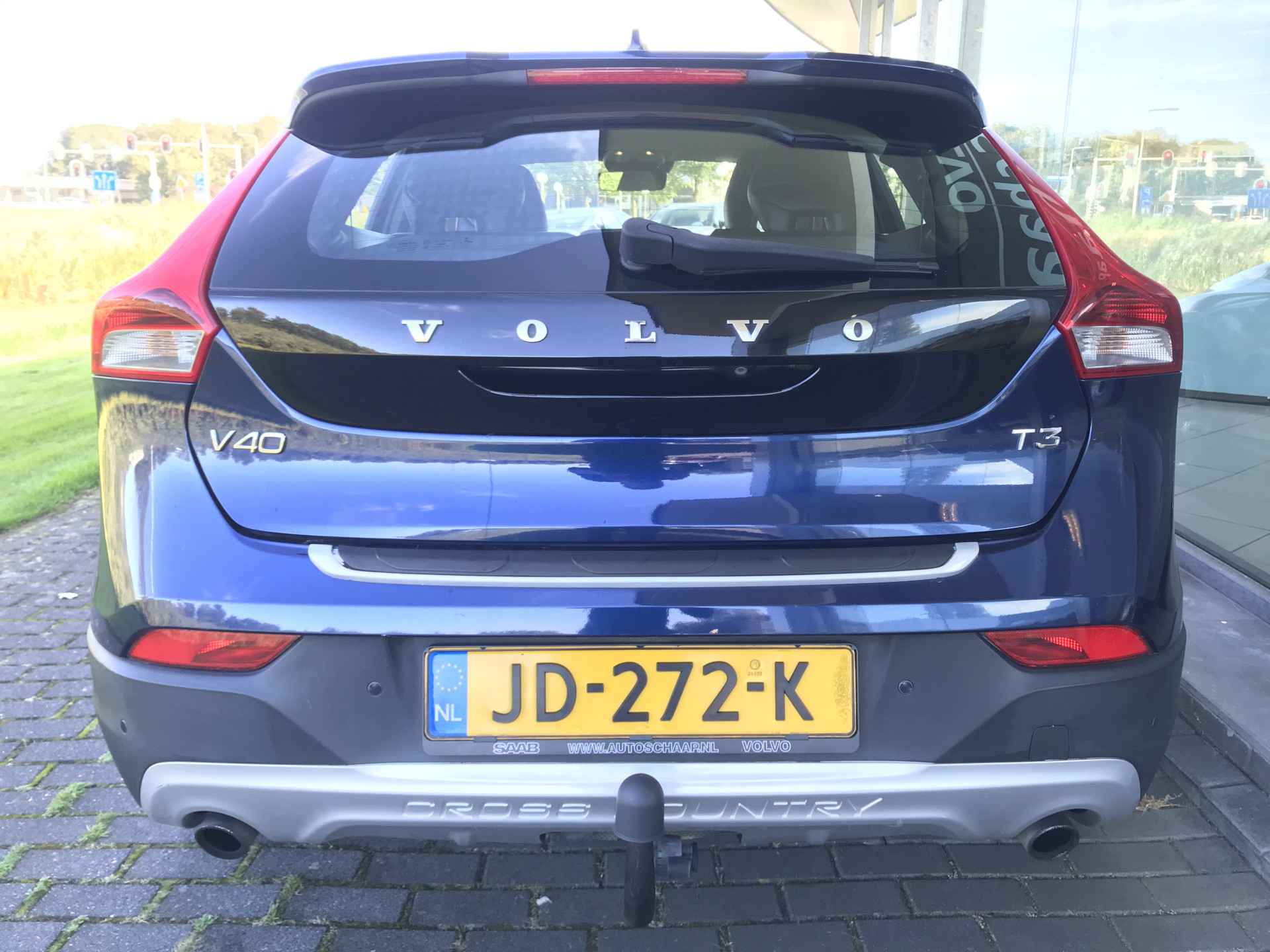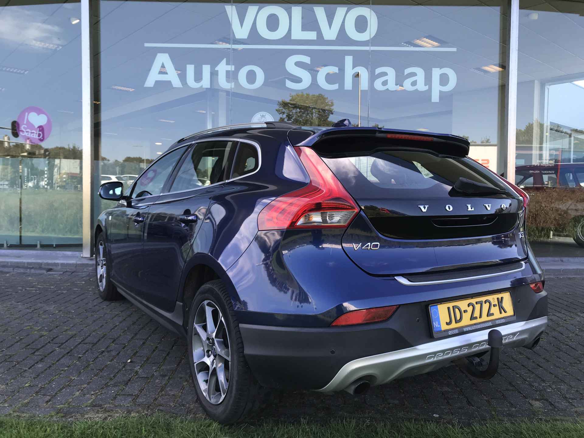 Luxe Volvo V40 Cross Country 2.0 T3 Ocean Race voorzien van onder andere parkeersensoren achter met camera, afneembare trekhaak, elektrisch inklapbare buitenspiegels, regensensor, panoramadak, meesturende bi-xenon koplampen, verwarmbaar voorruit, Volvo On-Call, fabrieksnavigatie, elektrisch bedienbare bestuurderstoel, standkachel en climate control. Volledig Volvo dealer onderhouden, boekjes ter inzage.