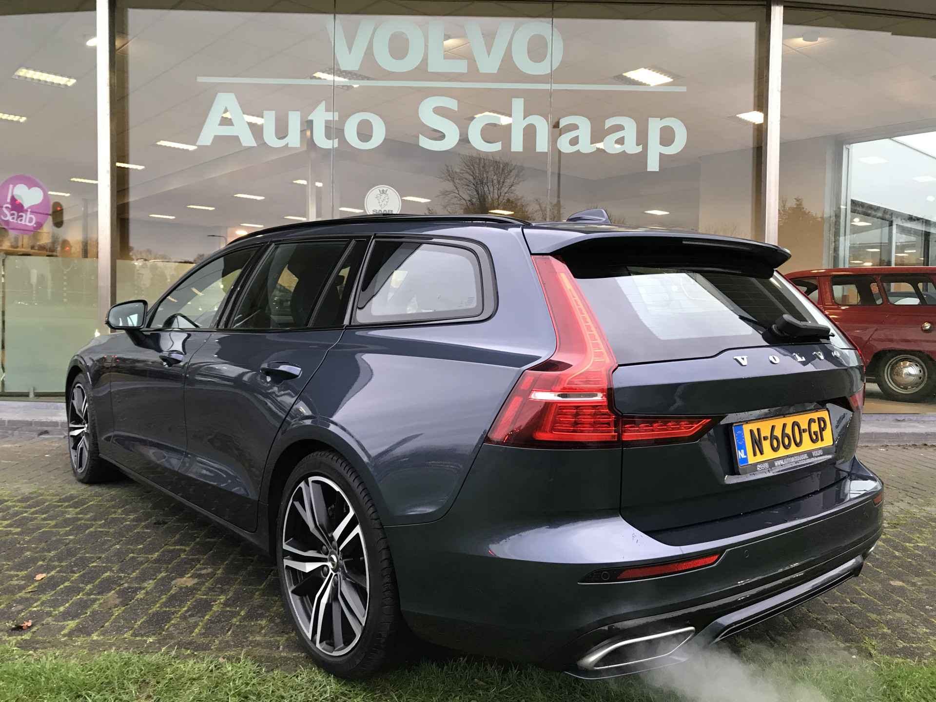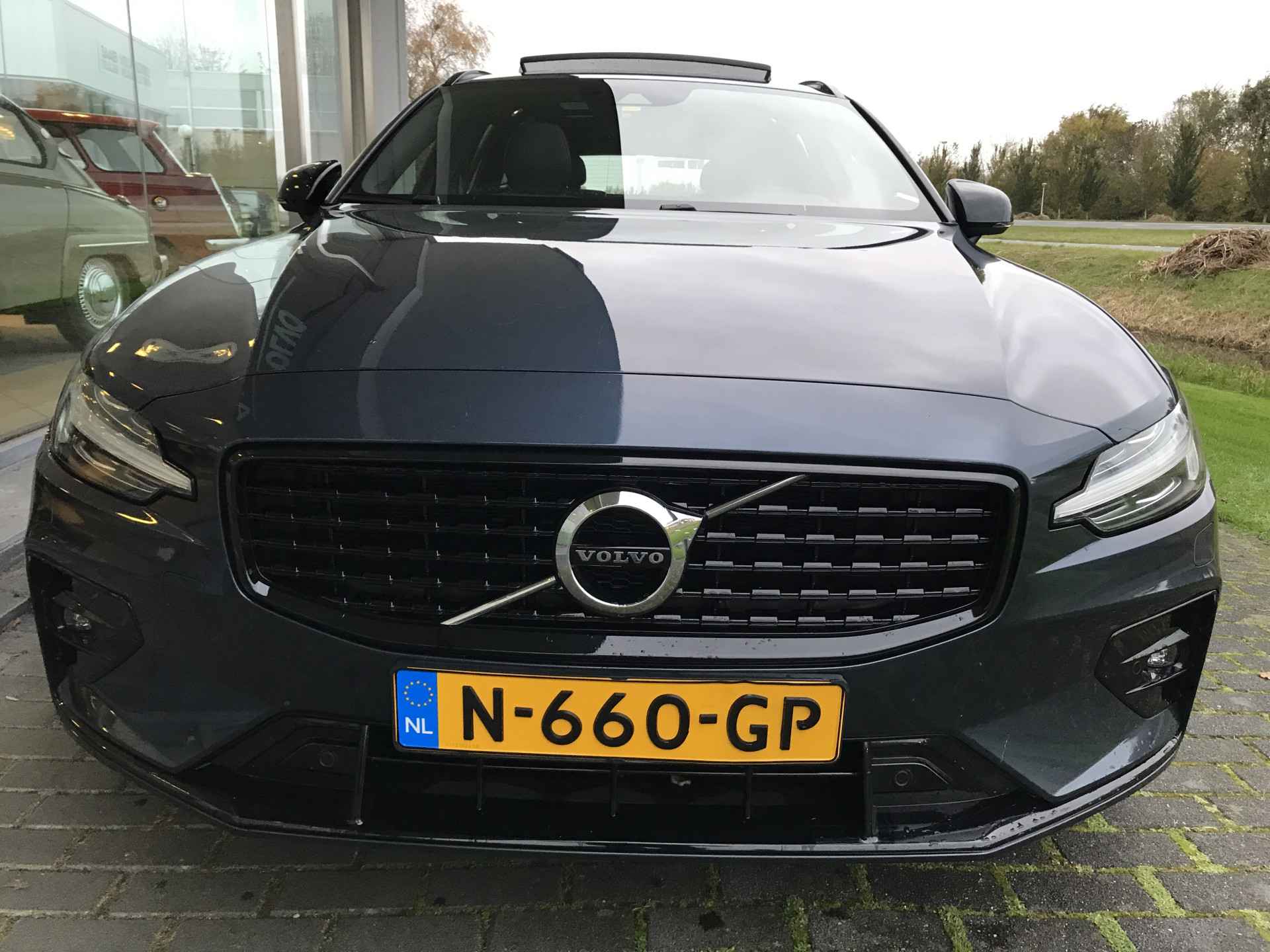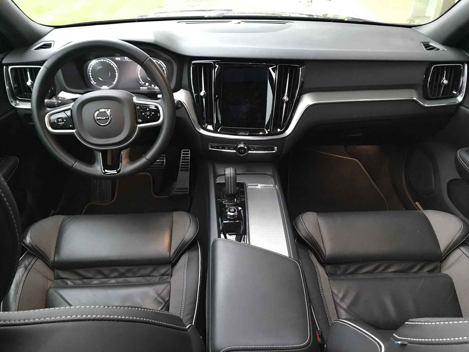 Luxe Volvo V60 2.0 B3 Mild Hybrid (geen stekker) R-Design voorzien van onder andere parkeersensoren voor achter met camera, meesturende LED verlichting, keyless entry, panoramadak, adaptieve cruise control met pilot assist, verwarmbare voorstoelen en stuurwiel, semi elektrisch wegdraaibare trekhaak, DAB radio, Volvo On-Call funtie en Apple Carplay/Android Auto. Volledig Volvo dealer onderhouden, boekjes ter inzage.