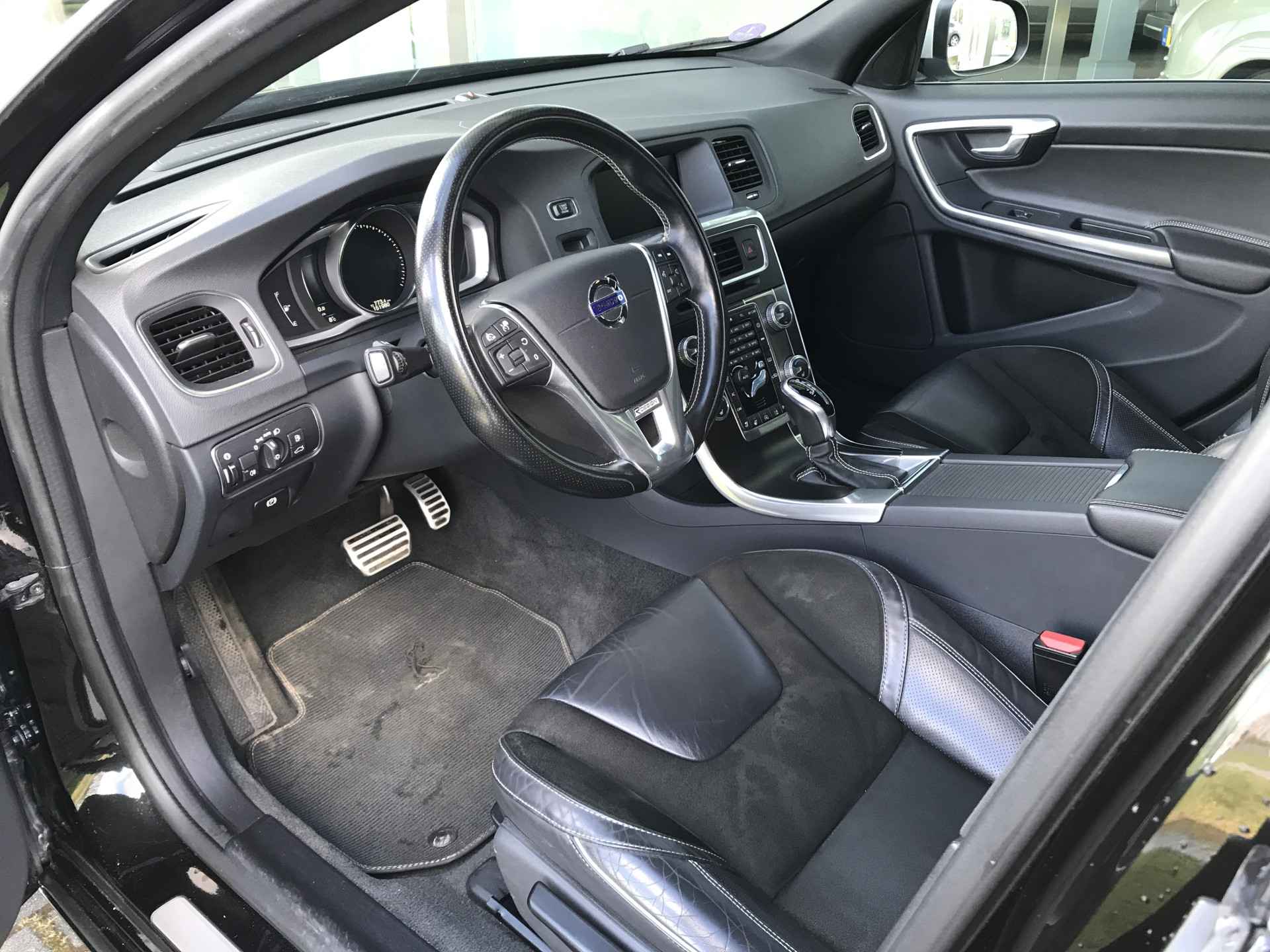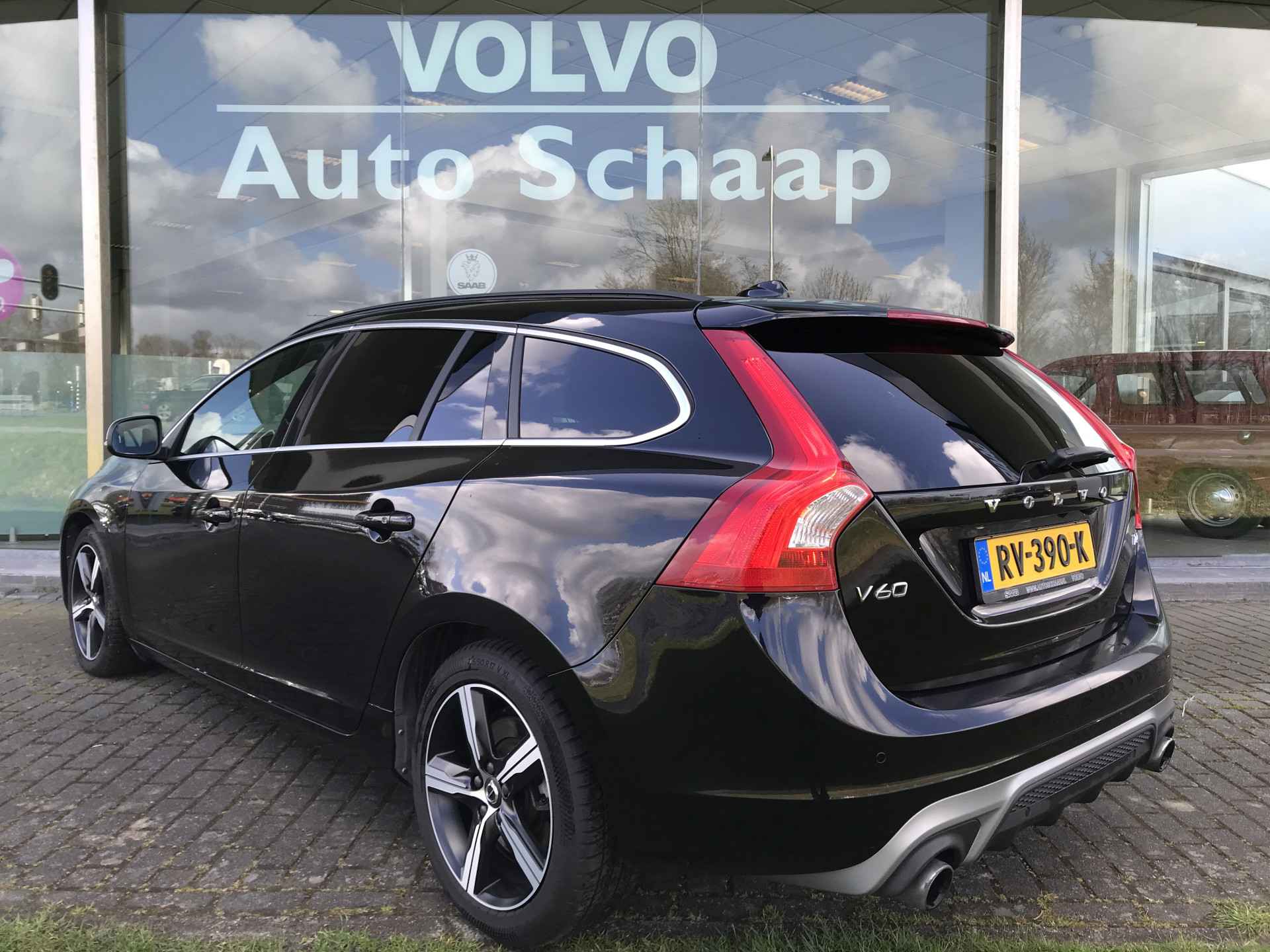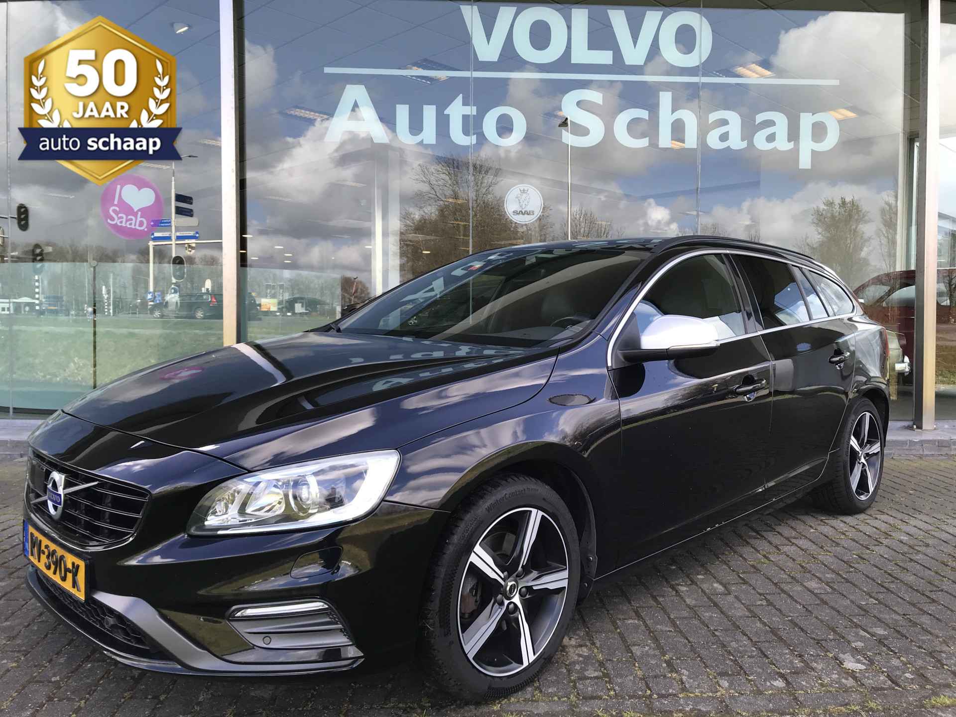 Volvo V60 2.0 T4 Polar+ Sport (R-Design) Automaat in de kleur Onyx Black metallic. Voorzien van onder andere parkeersensoren voor en achter met camera, meesturende bi-xenon koplampen, adaptieve cruise control, standkachel, keyless entry, donker getint glas achter, verwarmbare voorstoelen, achterbank en stuurwiel, zwarte hemelbekleding, climate control, start/stop systeem en actief groot licht functie. Voornamelijk Volvo dealer onderhouden, boekjes ter inzage.
