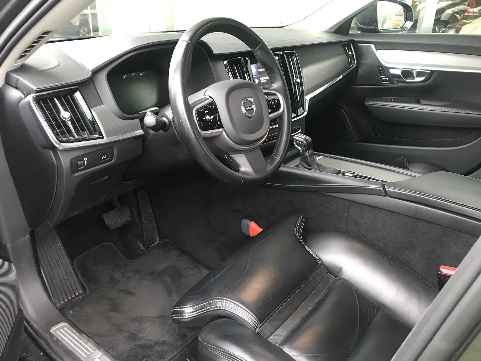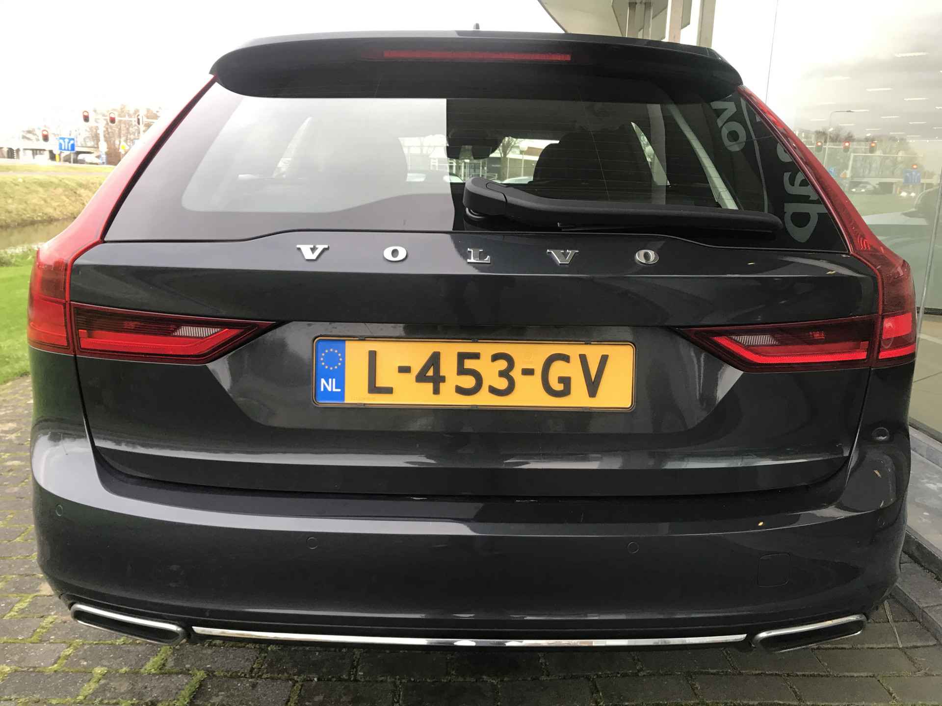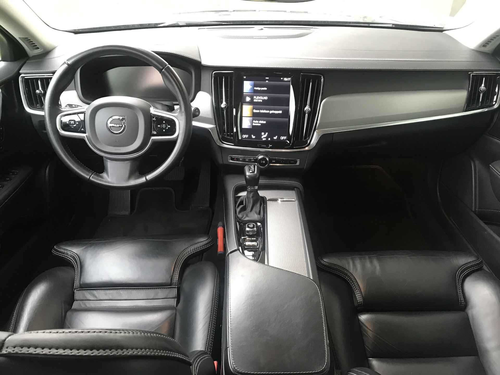 Volvo V90 2.0 T4 Inscription voorzien van parkeersensoren voor en achter met camera, LED mistlampen voor, Harman/Kardon audio, regensensor, DAB, keyless entry, elektrisch bedienbare kofferklep, Apple Carplay/Android Auto, elektrisch bedienbare voorstoelen met geheugen, dodehoeksensoren en verkeersborden herkenning. Volledig Volvo dealer onderhouden, boekjes ter inzage.