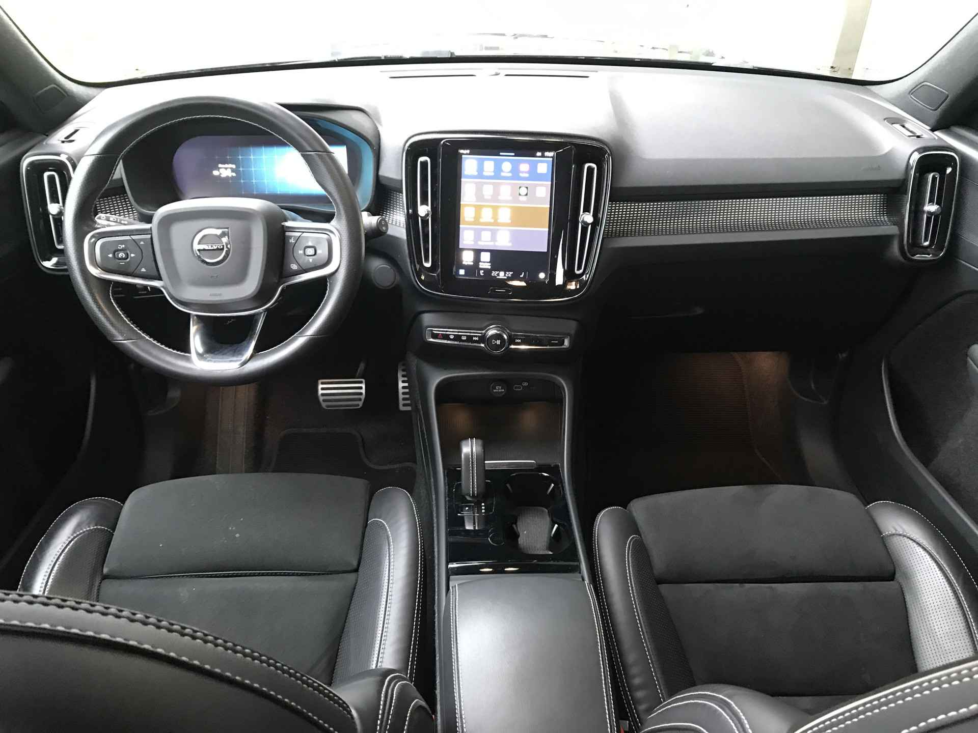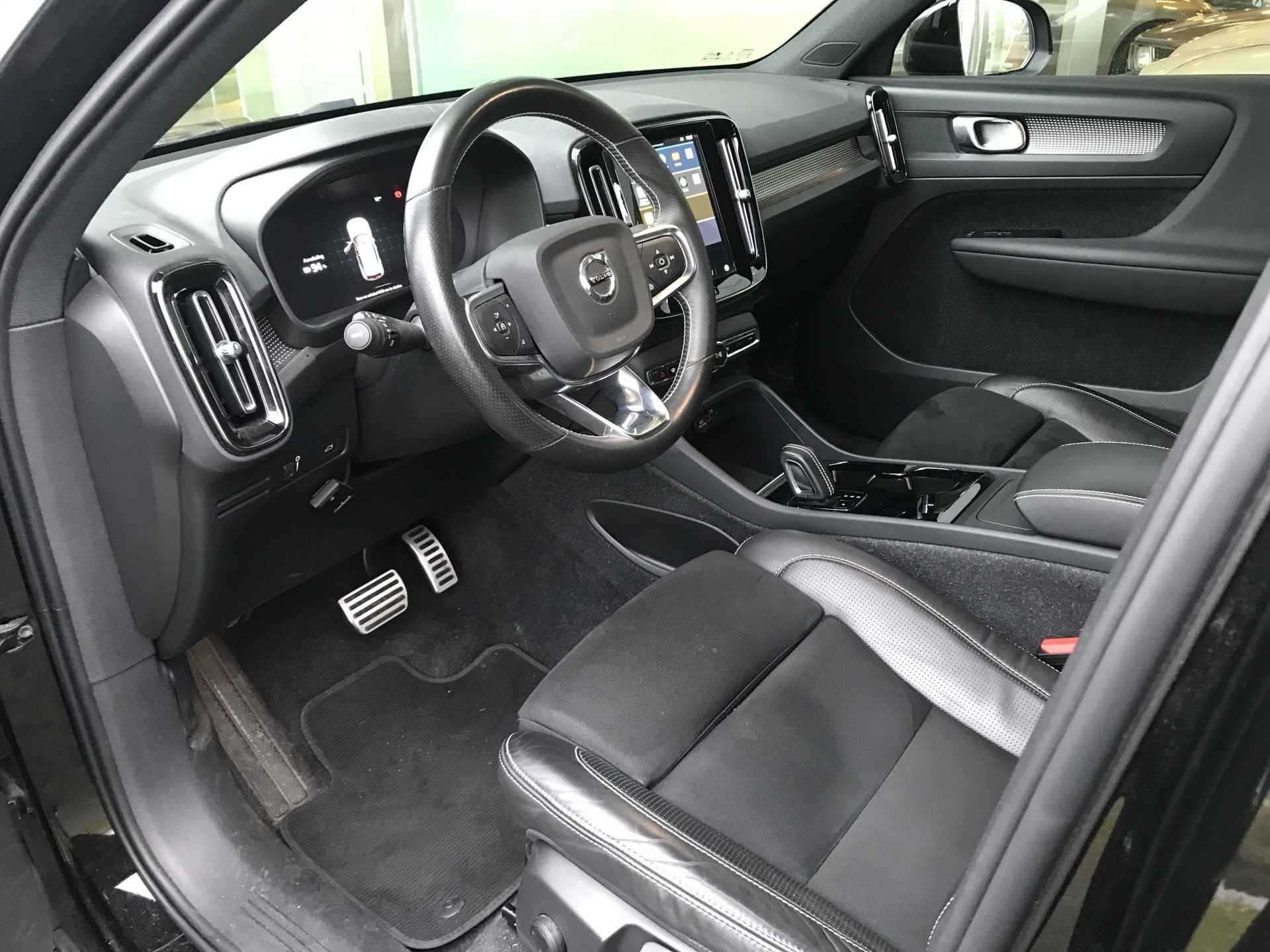 Volvo XC40 Recharge P8 AWD R-Design voorzien van onder andere LED mistlampen voor, parkeersensoren achter, 19 inch lichtmetalen velgen, keyless entry met sensorsturing, lederen stuurwiel, adaptieve cruise control met Pilot Assist, elektrisch bedienbare kofferklep, dodehoeksensoren, elektrisch inklapbare buitenspiegels, Carplay/Android auto, verwarmbare voorstoelen en stuurwiel. Volvo dealer onderhouden, boekjes ter inzage.