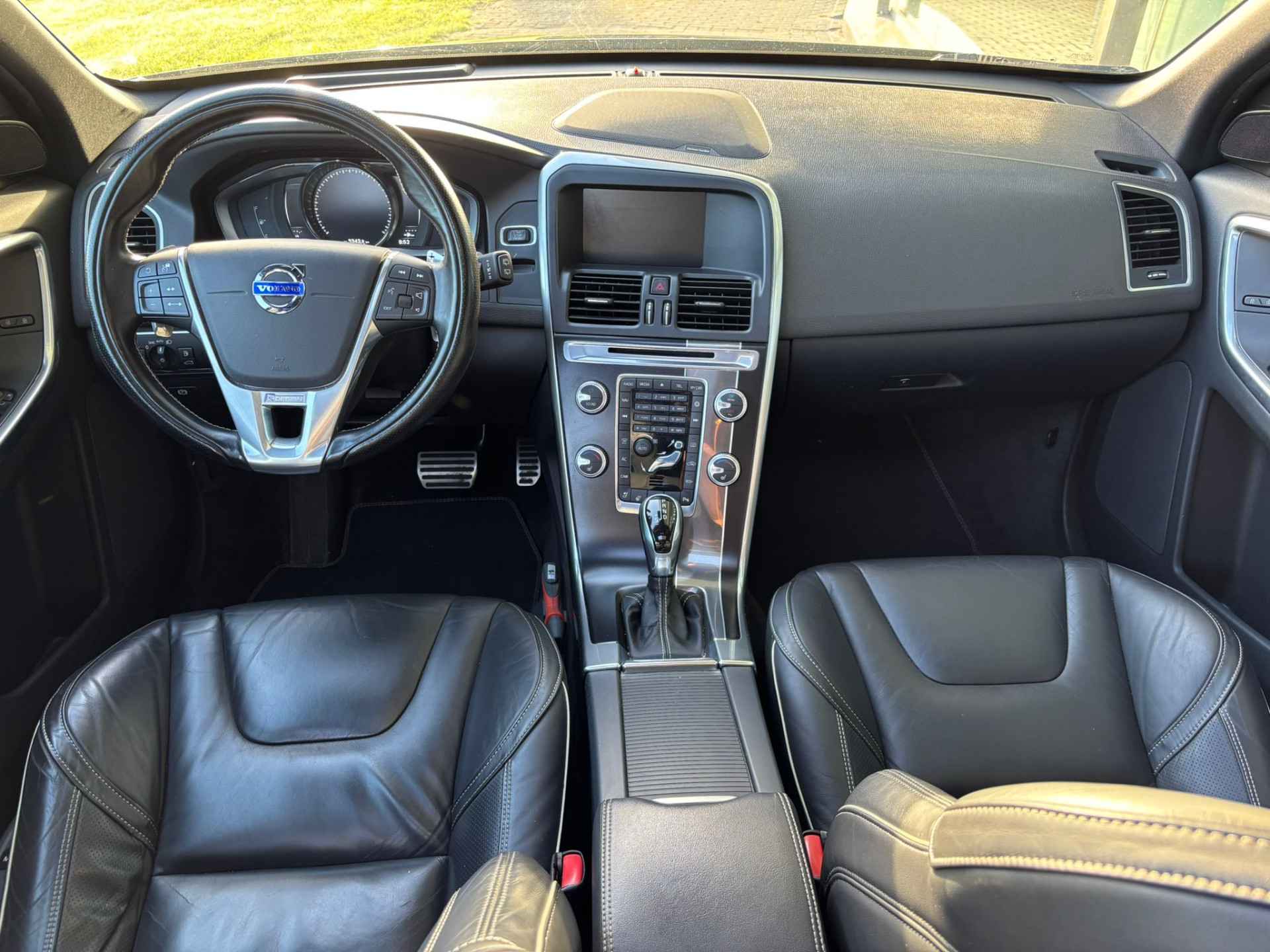 Luxe Volvo XC60 2.0 T5 FWD R-Design automaat voorzien van onder andere bochtverlichting, parkeersensoren voor en achter met camera, adaptieve cruise control, dodehoeksensoren, 20 inch lichtmetalen velgen, Harman/Kardon audiosysteem, actief grootlicht, panoramadak, standkachel, keyless entry, afneembare trekhaak, geintegreerde zitverhogers in achterbank, DAB, verwarmbaar stuurwiel, zwarte hemelbekleding en elektrisch bedienbare voorstoelen. Prima onderhouden, boekjes ter inzage. Wordt geleverd inclusief nieuwe distributieriem!